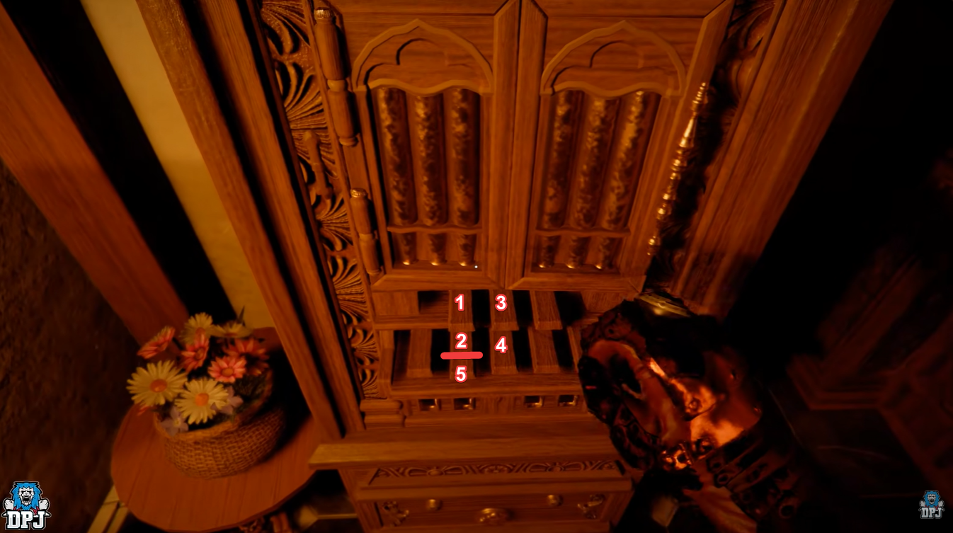 The puzzle involves selecting musical notes in a specific order. Precision is critical here, as incorrect inputs can delay progress or raise suspicion if you linger too long.