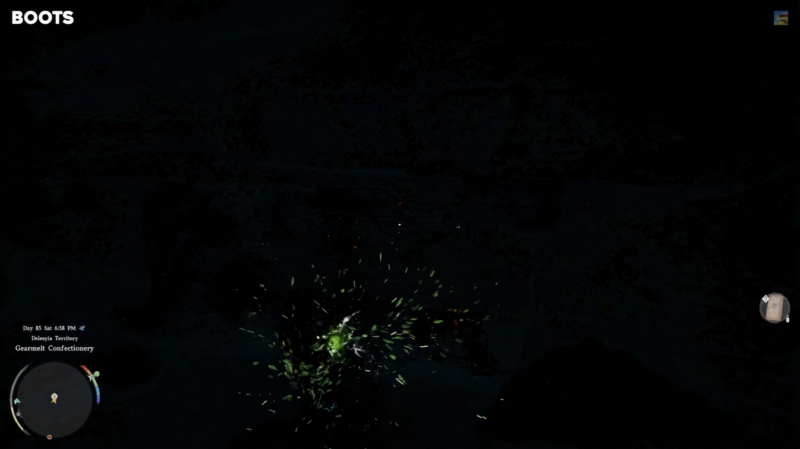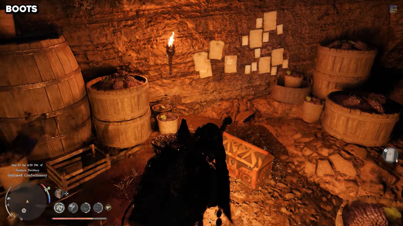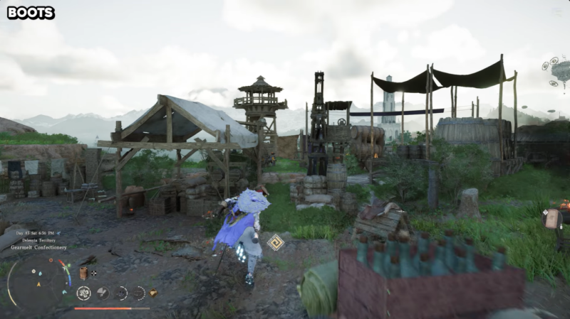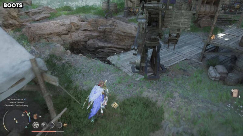 You will find the Masked Liberator’s Leather boots in the Gearmelt Confectionery area in Deleysia. It is deceptively quiet but filled with hidden mechanics and environmental puzzles. As you approach from Drywind Valley, you’ll notice uneven terrain and subtle structural remnants that hint at something concealed beneath the surface.
