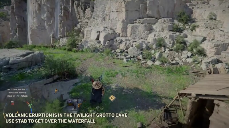 The location itself is slightly concealed, which makes this Abyss gear easy to miss if you are not actively exploring. You will need to head toward Hernand’s Hills of No Return, specifically near the Blue Ripple Hearth. From there, look for a waterfall tucked into the terrain, as this is your entry point.
