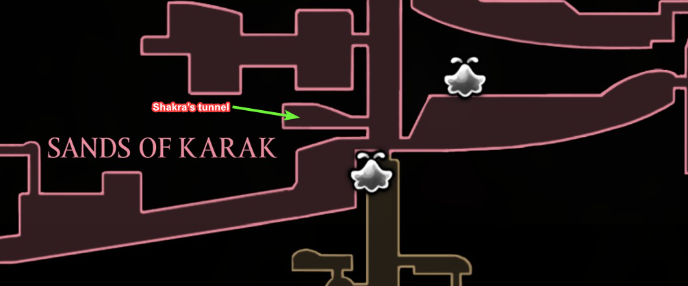 - Picking up a map from Shakra in Sands of Karak helps mark key points and shortcuts.