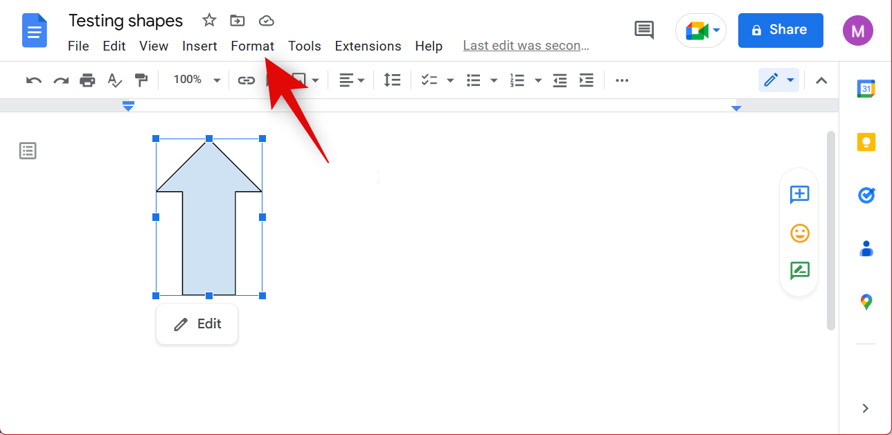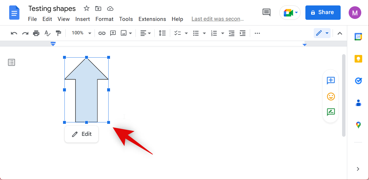 You can also edit the original drawing you used to create a shape and manipulate most aspects of it. This can come in handy if you wish to change the design throughout creating your document. Use the steps below to edit an already-created drawing in Google Docs.