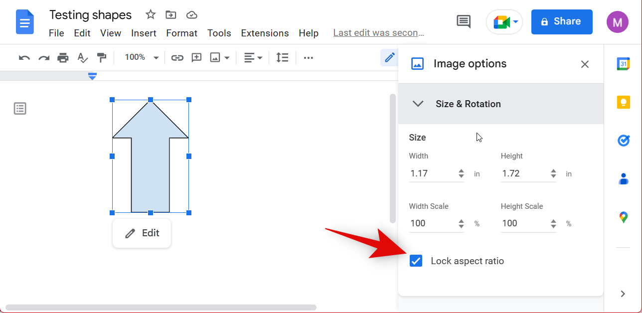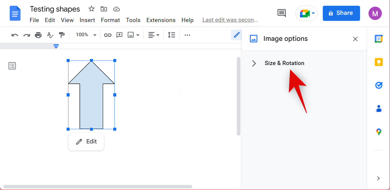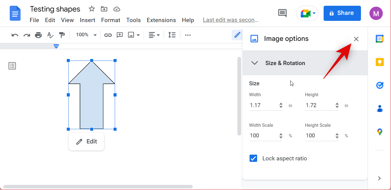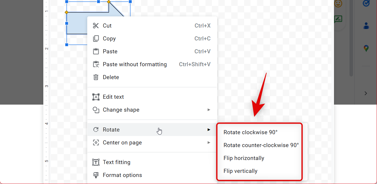 Here’s how you can resize and rotate your shape manually in Google Docs.