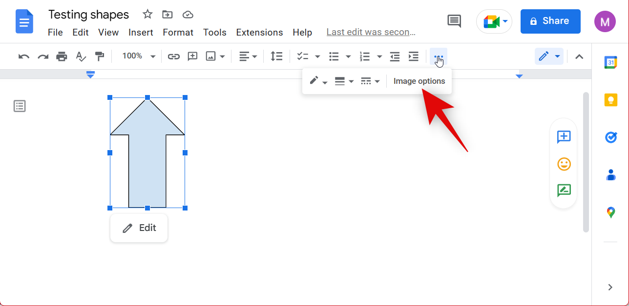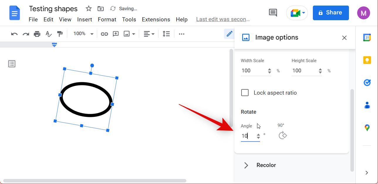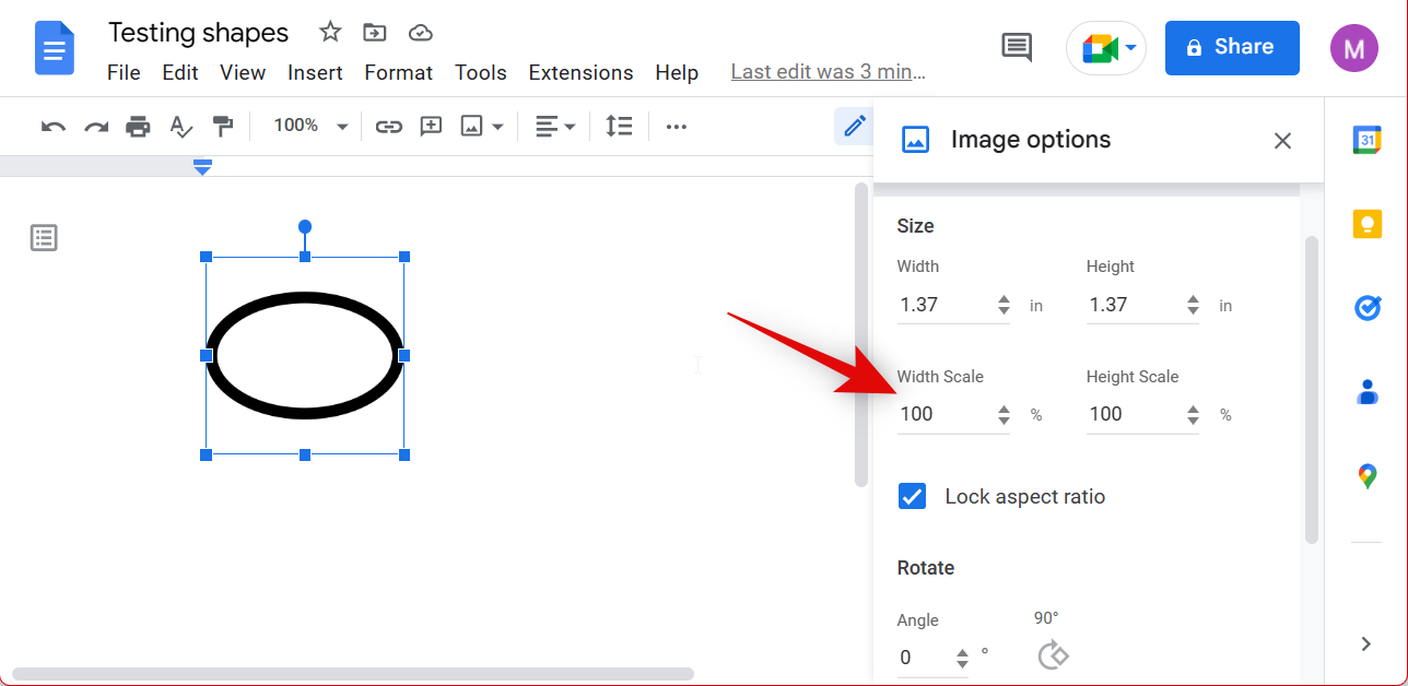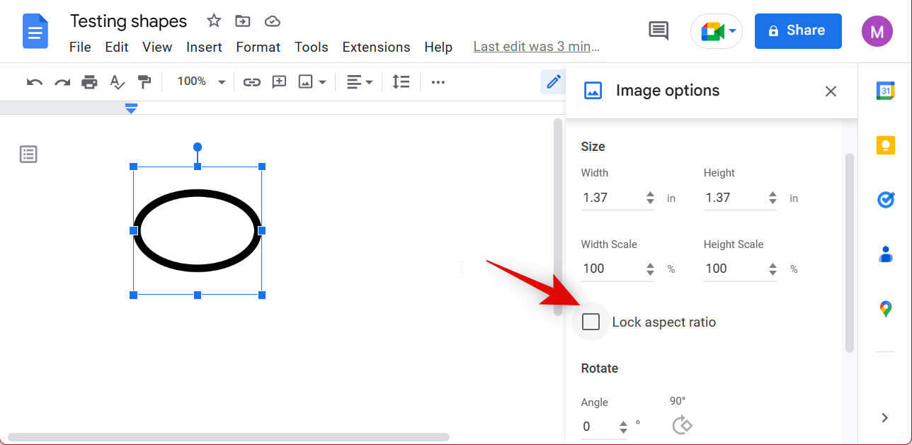 You can resize and rotate shapes using two ways in Google Docs. You can use the corners and manually resize and rotate your image or use image options to dial in specific sizes and rotation values for your shape. Image options allow you to fine-tune your shape size and orientation. Use the steps below to help you resize your shape depending on the method you prefer.
