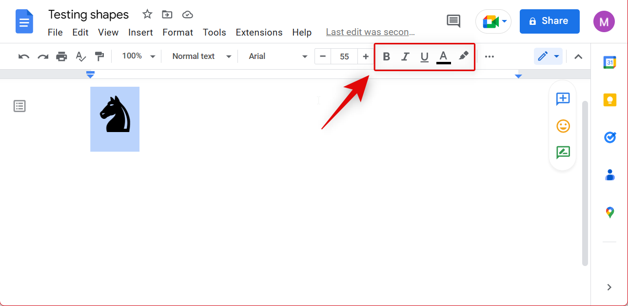 Special characters are treated like alphabetical characters, so you can apply most formatting options available for text to special characters. This means you can change font size, bold, change color, and a lot more when using Special Characters as your shapes in Google Docs. You can use the following options to change and format your Special Character shapes as needed.