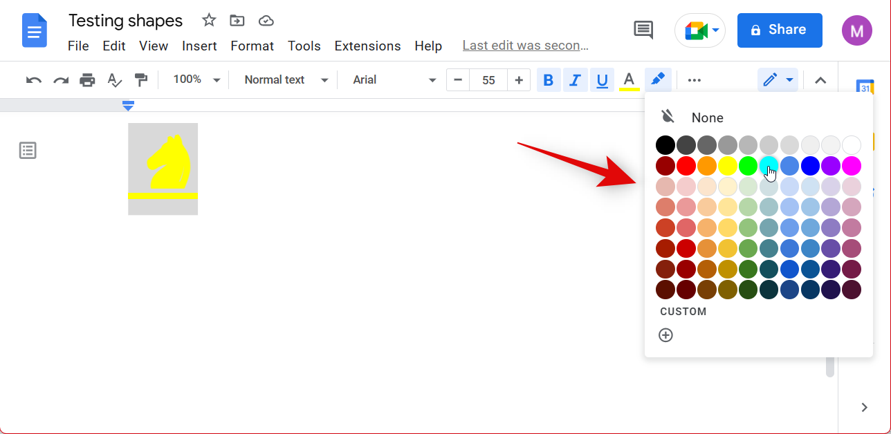 Here’s how you can customize shapes in Google Docs. The customizability of your shape will depend on the source you used to add your shape. Use the relevant section below depending on how you added your shape to customize it.