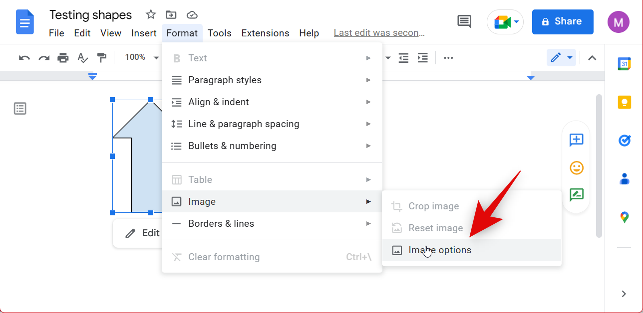 You can change color and make adjustments to your shape using the Image options as well. Follow the steps below to help you change and adjust the color of your shapes in Google Docs. Follow the steps below to help you along the way.