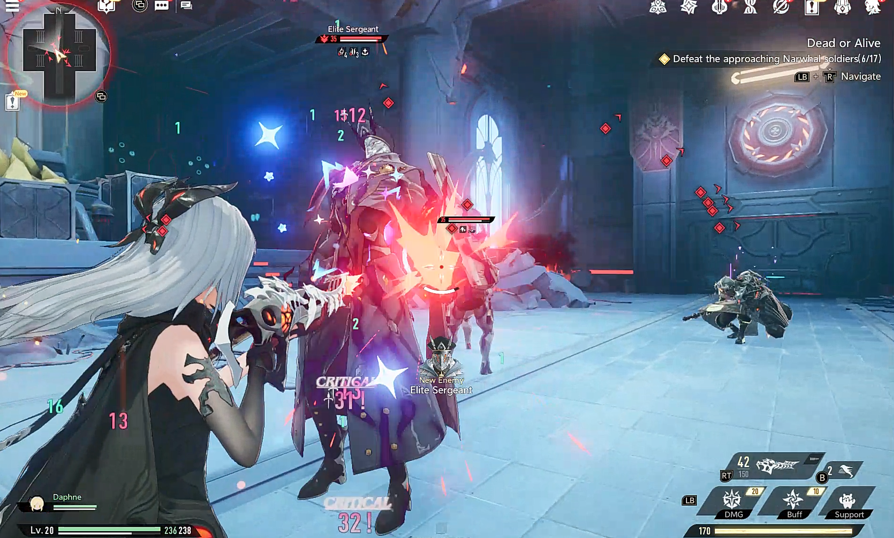 The mission begins with an ambush inside Lonza Fortes. You’ll face 17 Narwhal Soldiers and encounter the Elite Sergeant for the first time — an enemy commander who rallies nearby troops, increasing their attack and defense. Focus on eliminating the Elite Sergeant early to make the fight more manageable. Once cleared, the area will stabilize briefly before the next objective triggers.