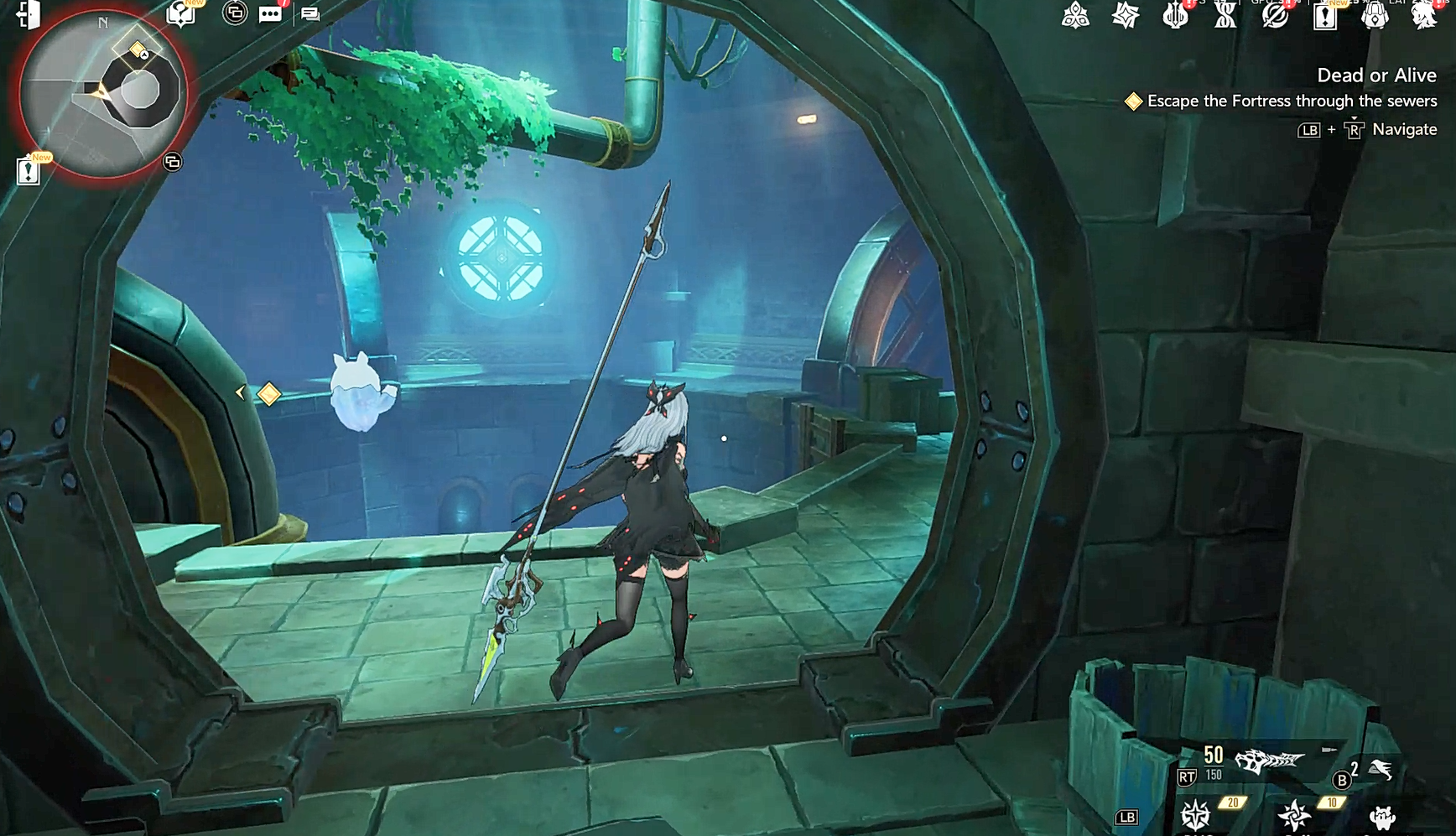 After using the lift, you’ll enter Lonza Fortes’ sewer system — a dark, partially submerged tunnel network now overrun by enemies. Here, the objective changes to preventing the place from flooding completely.