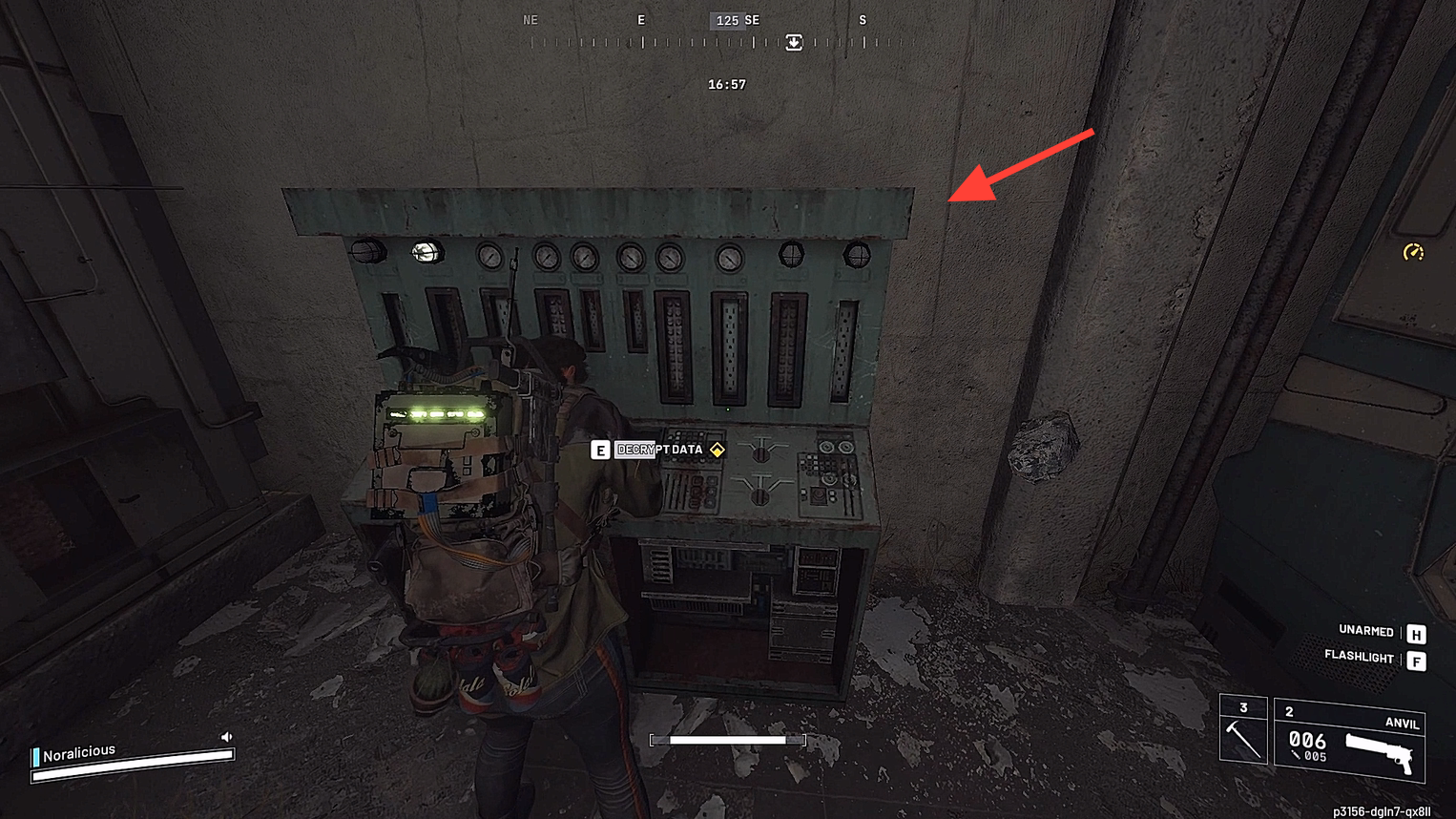 Search for the decryptor machine. Use it to decrypt the data. The machine will break, prompting you to move to the Arrival Building for a different model decryptor.