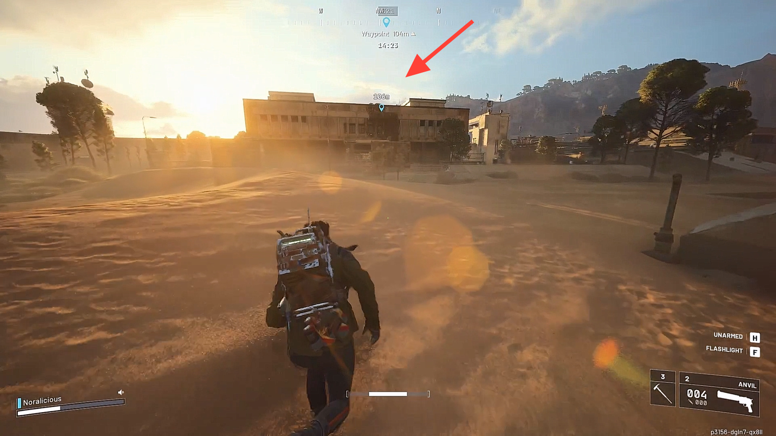 Use the distance indicator to reach the Arrival Building, a high loot value location. Destroy the guarding robots inside the building.