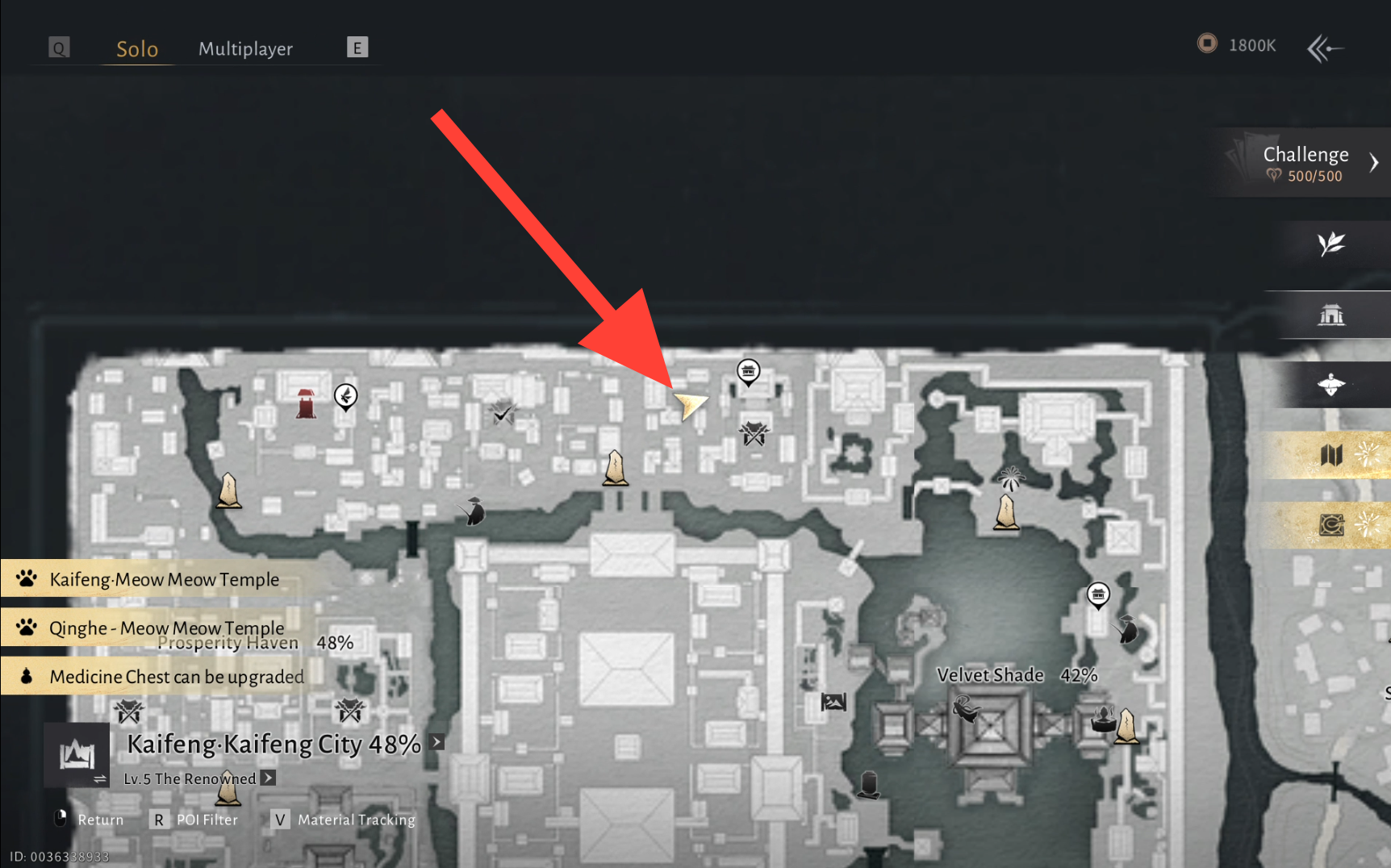 To start this Wandering Tale, head to the marked location near the Sundries Market Boundary Stone in Kaifeng City and speak with Chen Baolai resting inside his shop.