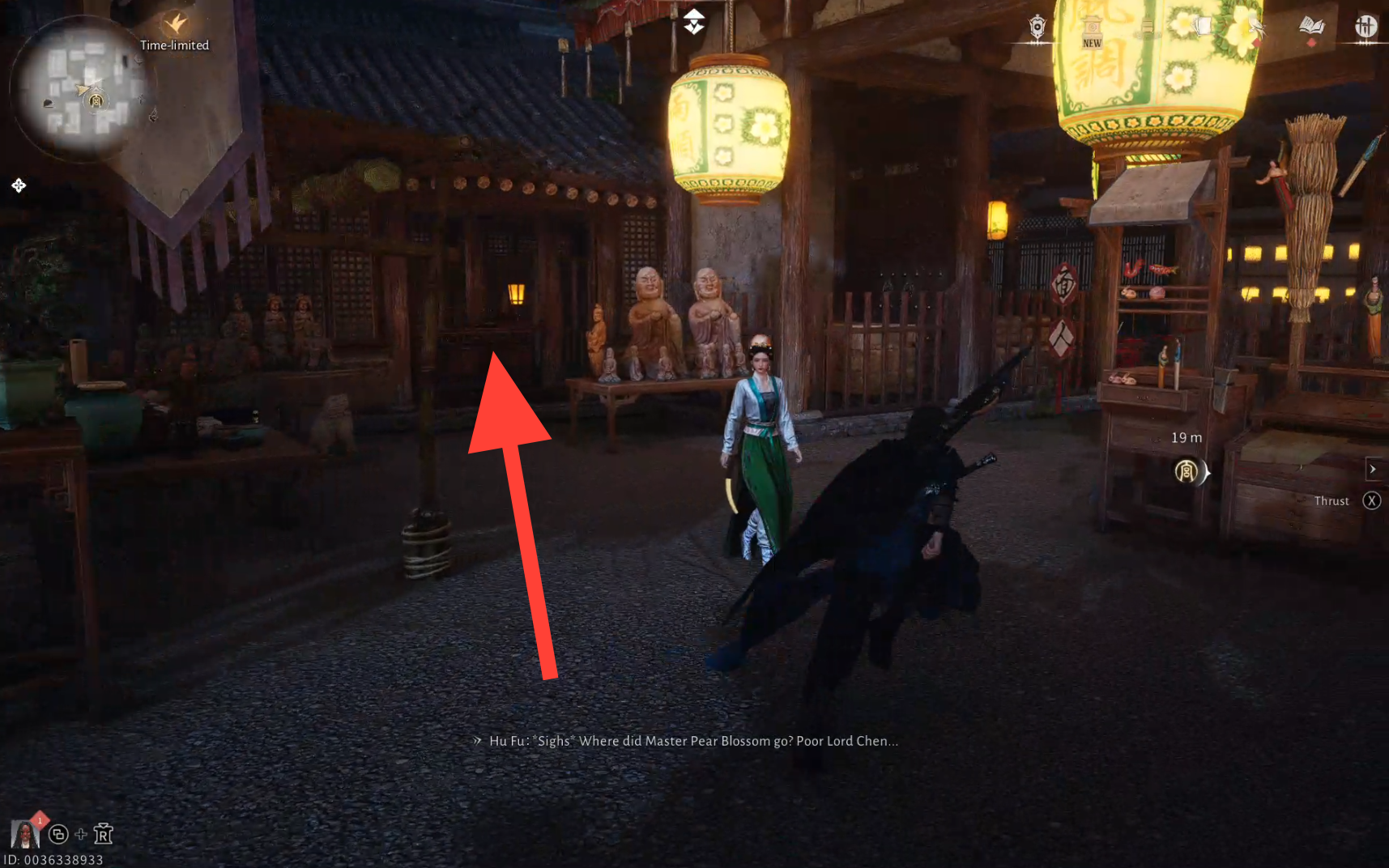 The "Deep Pond of Pear Blossoms" is a Wandering Tale in Where Winds Meet that begins near the Sundries Market Boundary Stone in Kaifeng City. Start by speaking with Chen Baolai inside his shop. Then, talk to Hu Fu, who is sweeping the street nearby. Pick up the Pear Blossom Wine under the tree beside the well and return it to Chen Baolai to complete the tale.