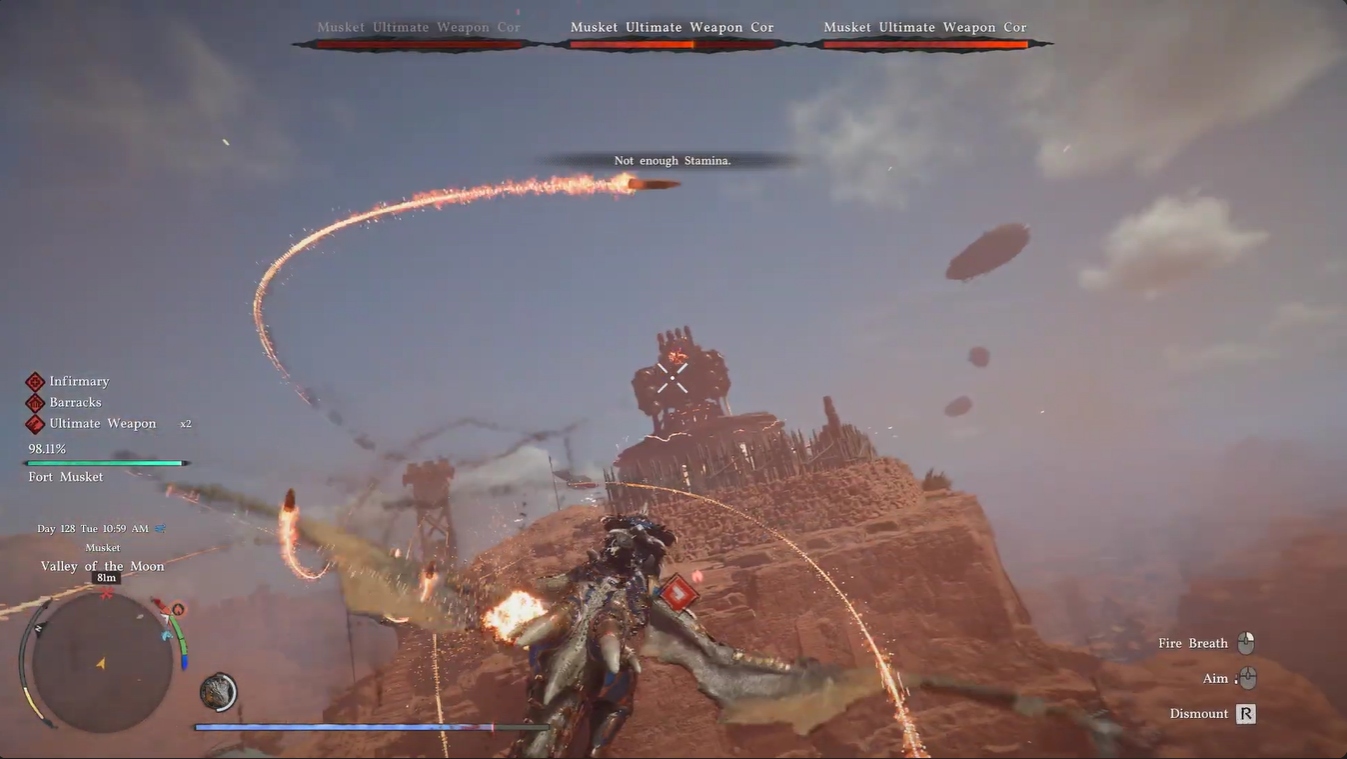 Prioritize nearby airships before targeting weapon cores. These ships fire tracking rockets that can quickly drain both health and stamina, making them the real danger.