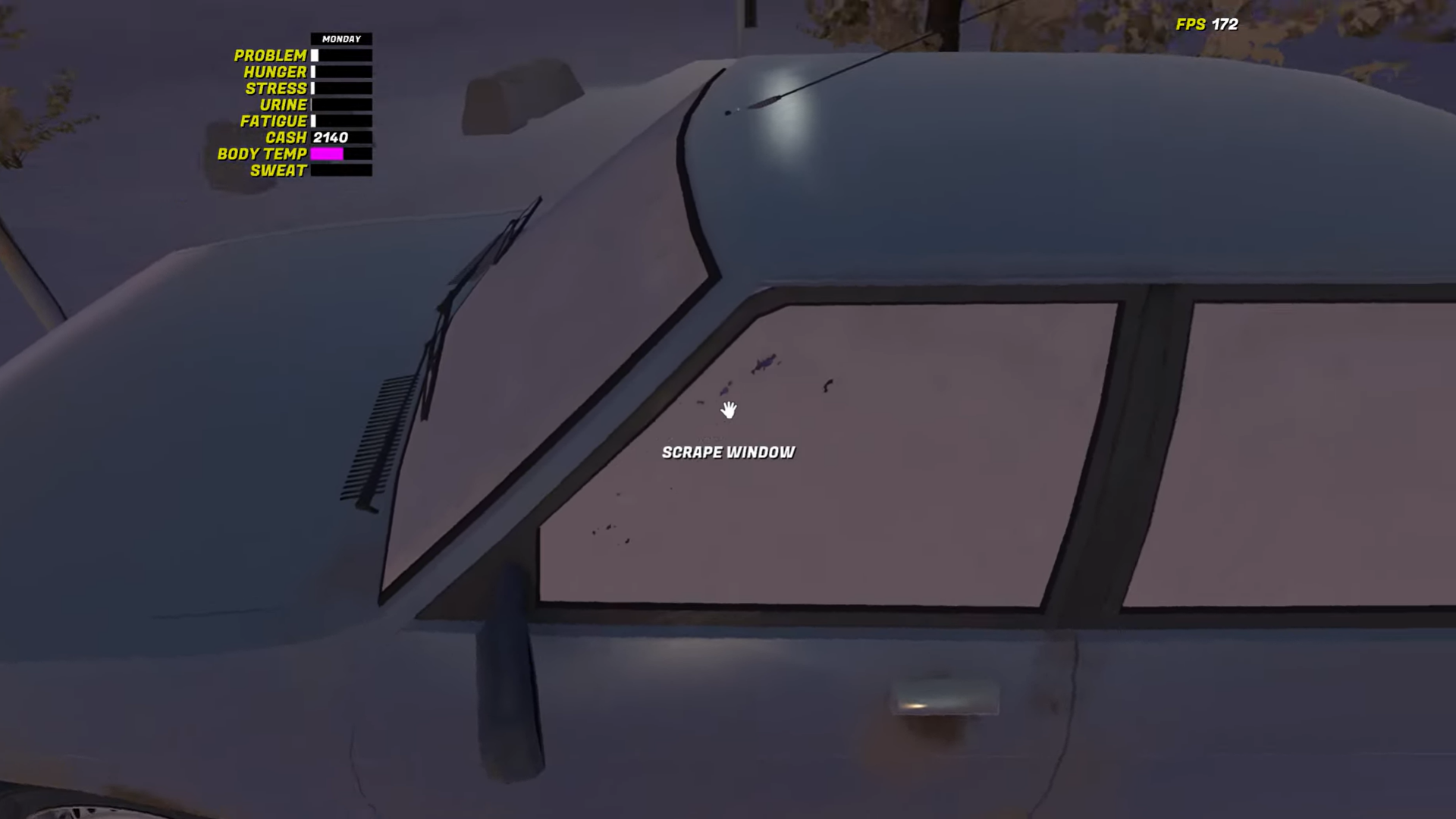 In My Winter Car, you need to scrape windows to remove snow from your windshield so that you can drive without hindrance, as relying just on the window heater will take a lot of time to scrap off the snow.