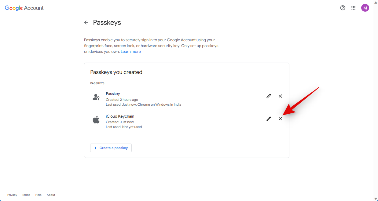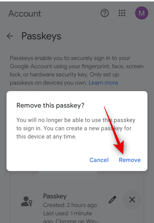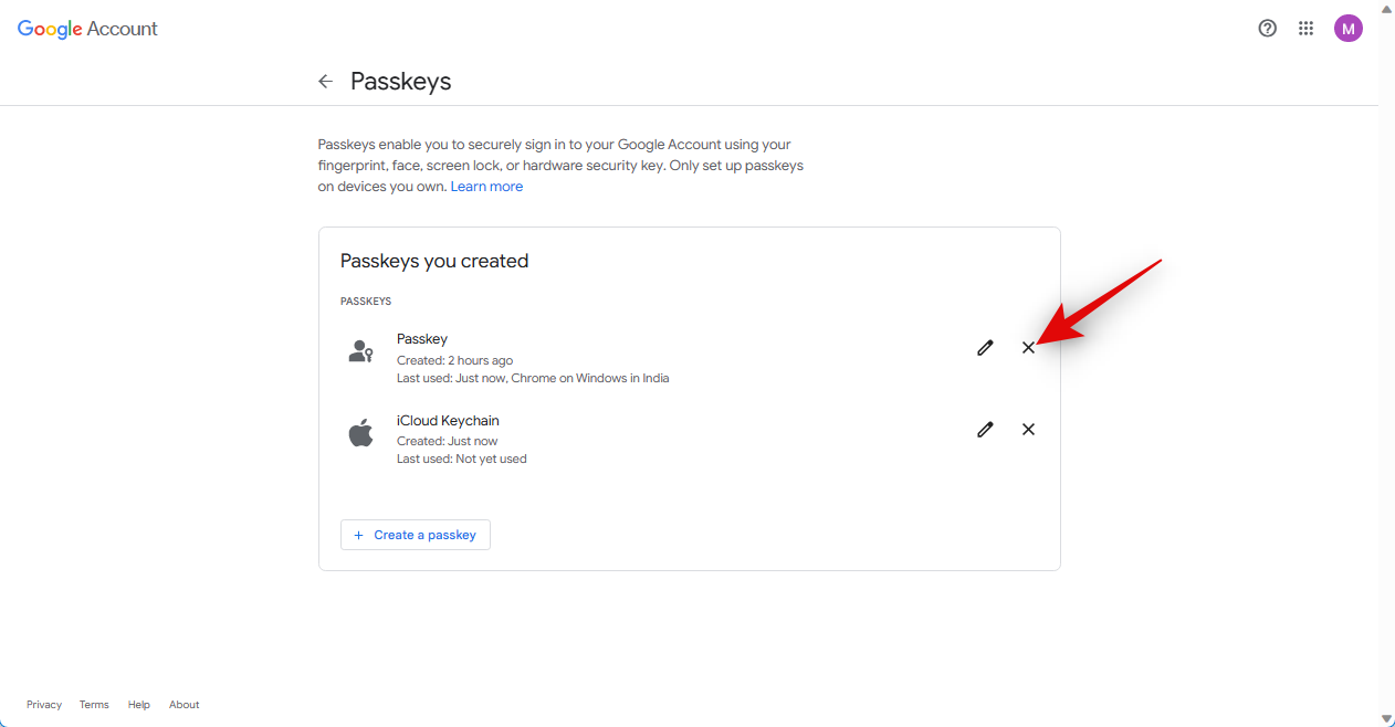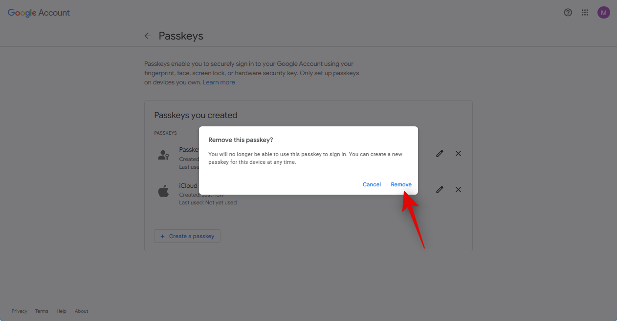 - Repeat the step above to remove any additional passkeys you wish to remove.