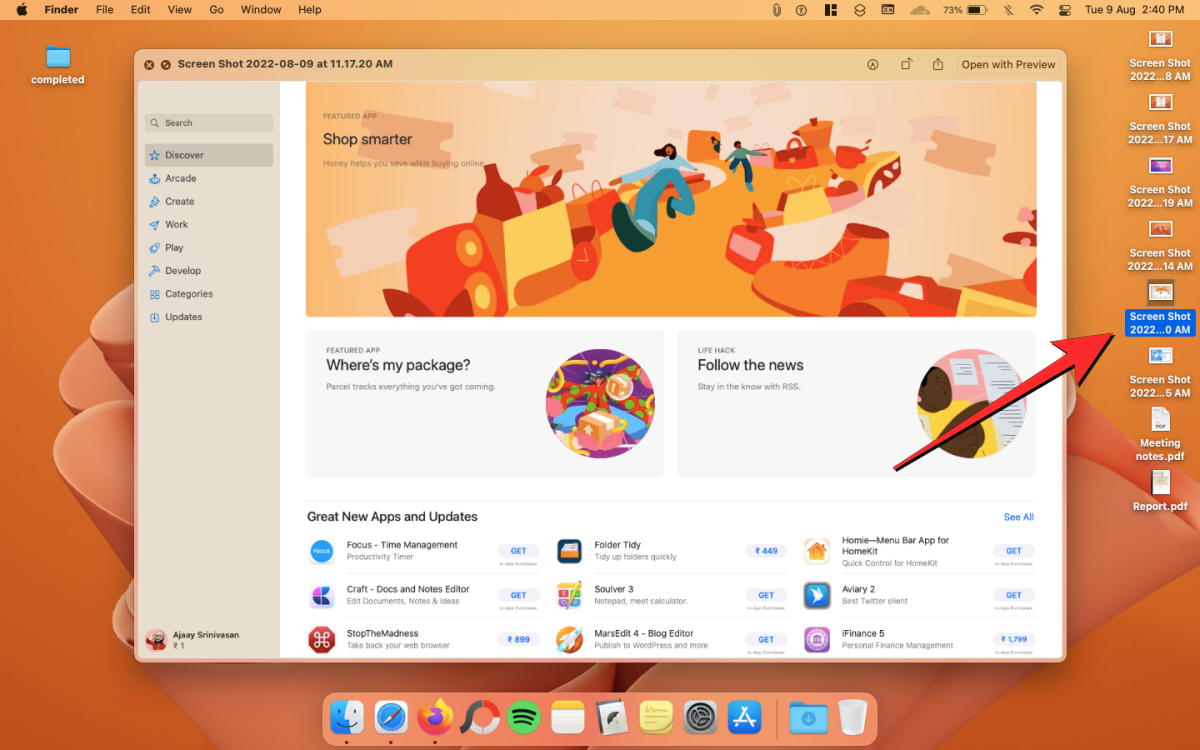 - macOS will now open the location of the selected screenshot inside the Finder app. You’ll see other screenshots in the same folder if you had captured them earlier.