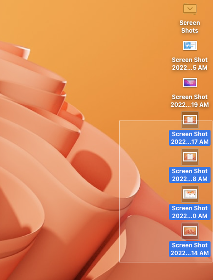 - You can click and drag to select multiple screenshots from here or use the Command key on your keyboard and click on the multiple files to select them.