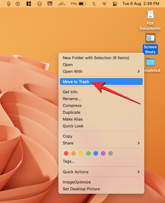 - When you’ve selected the necessary screenshots, right-click or Control-click on any selected file and click on Move to Trash from the overflow menu.