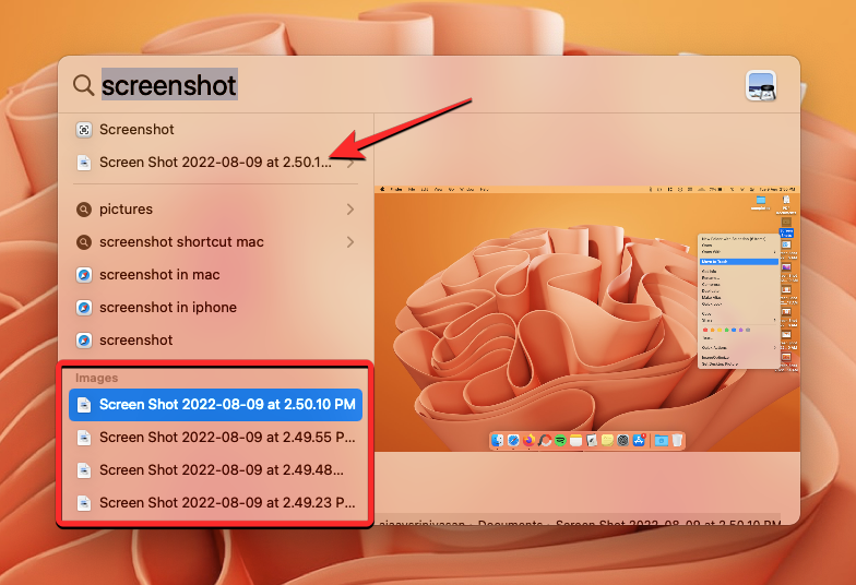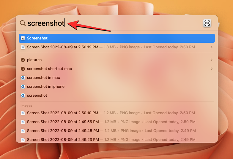 Another way to locate your screenshots on a Mac is by using the Spotlight feature which lets you search for any app or file that’s available on your device.