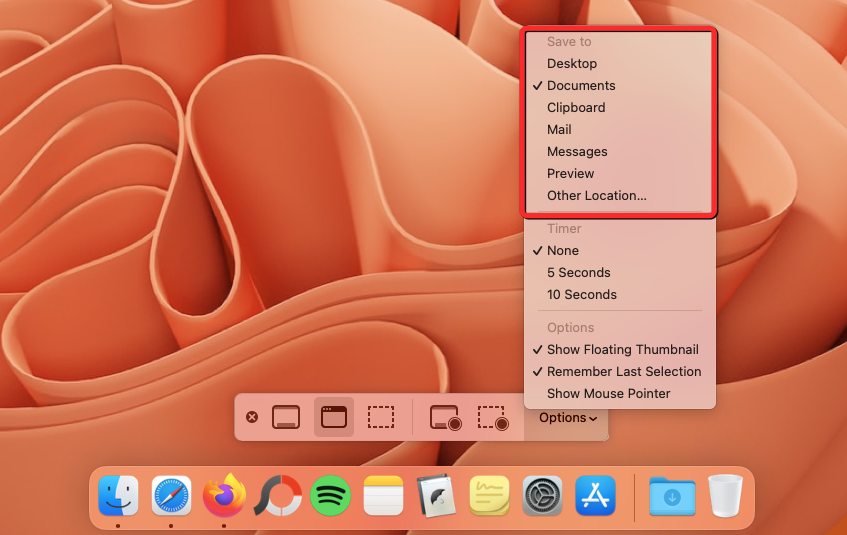 The easiest way to find where your screenshots are getting saved is by accessing the Screenshot tool on your Mac.