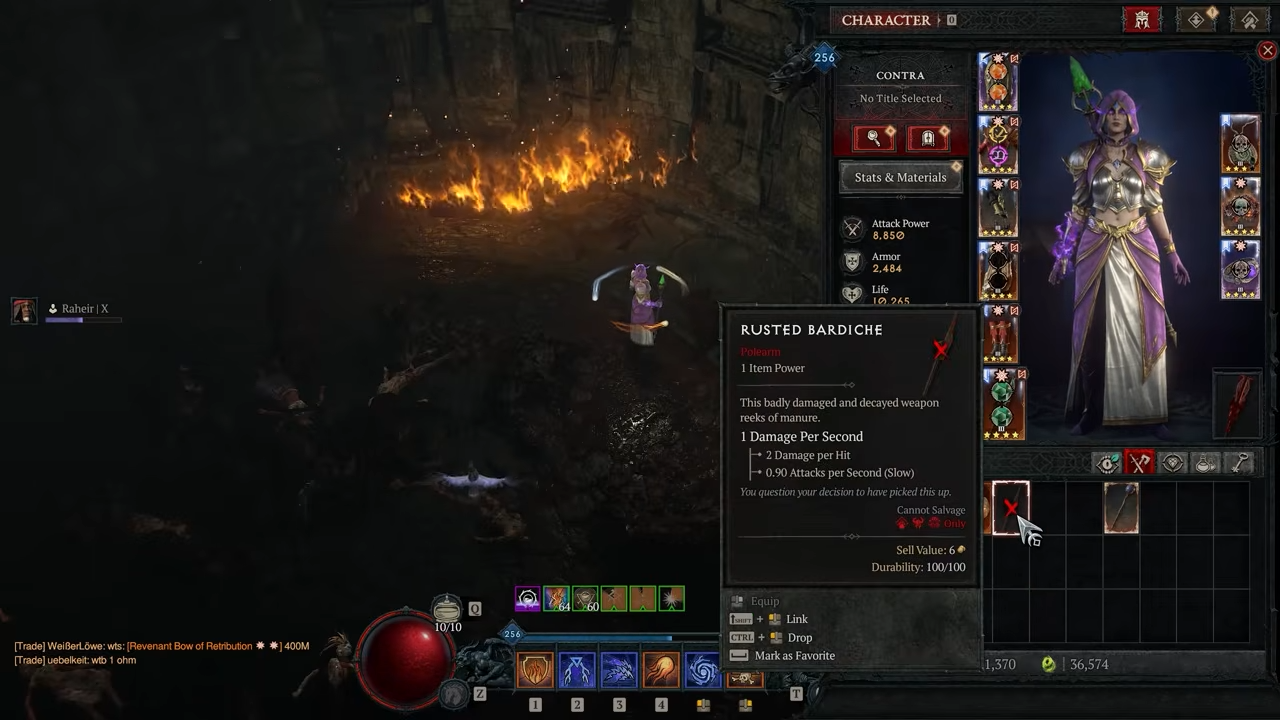 The rusted bardiche is a fully equippable weapon, albeit with intentionally poor stats and a humorous “reeks of manure” description, and it is widely expected to be a required component for entering the cow level in Lord of Hatred.