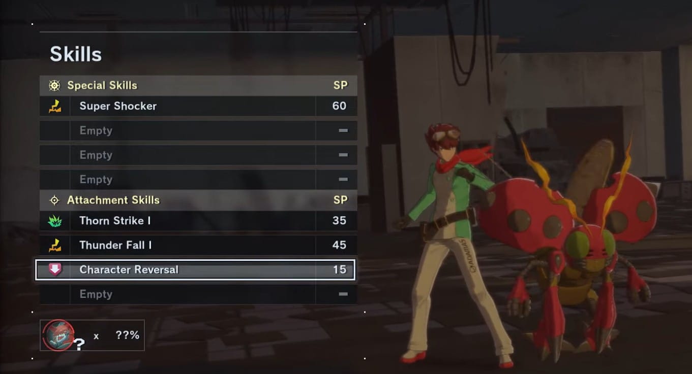 The skill becomes available for purchase in shops during the main mission "A Promise on a Scarf," making it accessible relatively early in the game. If you want access to Character Reversal from the very beginning of your adventure, prioritizing Digimon like Vademon, Andromon, or Pumpkinmon makes strategic sense, as they can learn the skill by level 20.