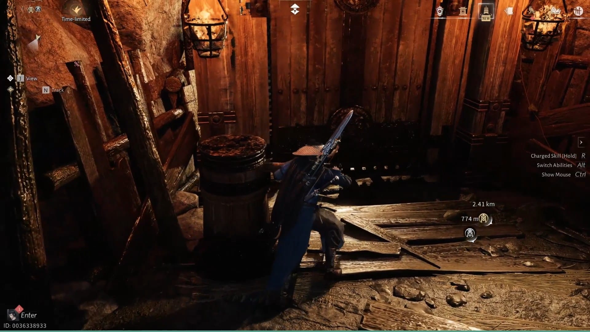 Go straight, jump over the wooden block, and then jump (use Charged Skill) and break through the floor.