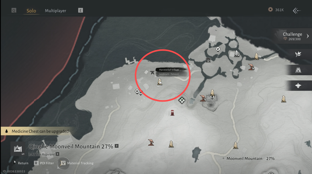 The Tranquil Waters dungeon is found inside the Divinecraft Dungeon network in the Witherwilds area (Near Harvestfall Village) of Qinghe region. It becomes accessible after interacting with its Divinecraft entrance and following the guidance markers toward the water-filled cavern.