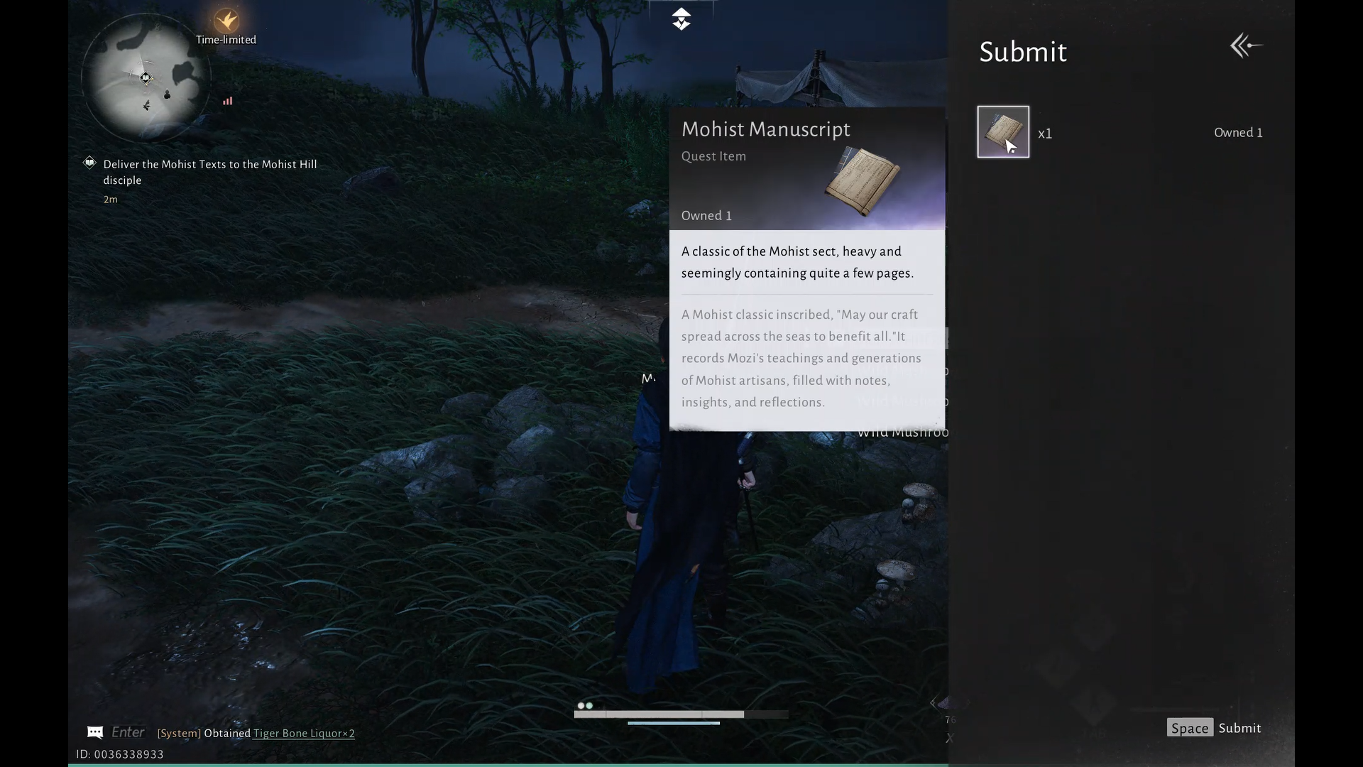 After a short conversation, the quest is completed. It is revealed that Greenwood Ruffian is actually a Mohist Hill Disciple.