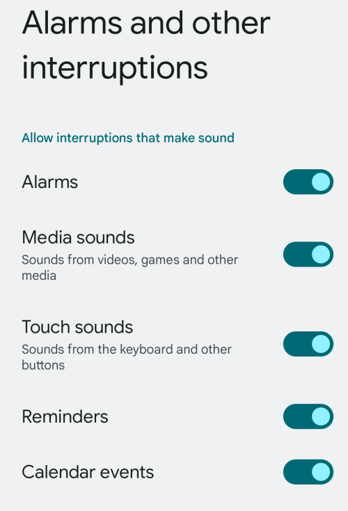 - Open the Settings app on Android and go to Sound & vibration / Notifications > Do Not Disturb > Alarms and other interruptions.