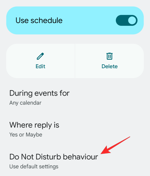 - The selected schedule should open on the next screen. To configure this schedule with custom exceptions, tap on Do Not Disturb behavior.