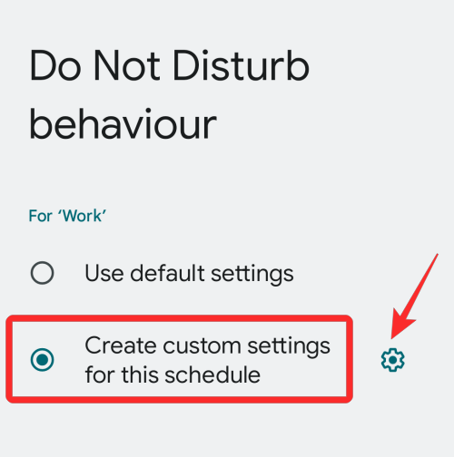 - On the next screen, select Create custom settings for this schedule and then tap on the cogwheel icon adjacent to it.