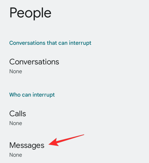 - To configure DND exceptions this way, go to Settings > Sound & vibration / Notifications > Do Not Disturb as we’ve shown above. On this screen, tap on People under the “What can interrupt Do Not Disturb” section.