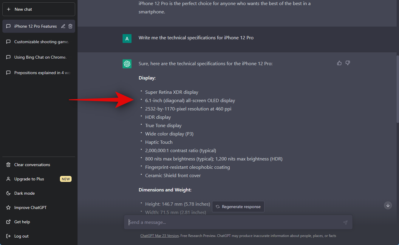 This is where things get a bit complicated. Around 14% of the text seems to be plagiarized, according to Quetext. However, as with previous results, only generic statements seem to match the published content, with the published content not being about the iPhone 12 Pro at all. Now let’s also try technical specifications for the iPhone 12 Pro and see how ChatGPT fares with that.