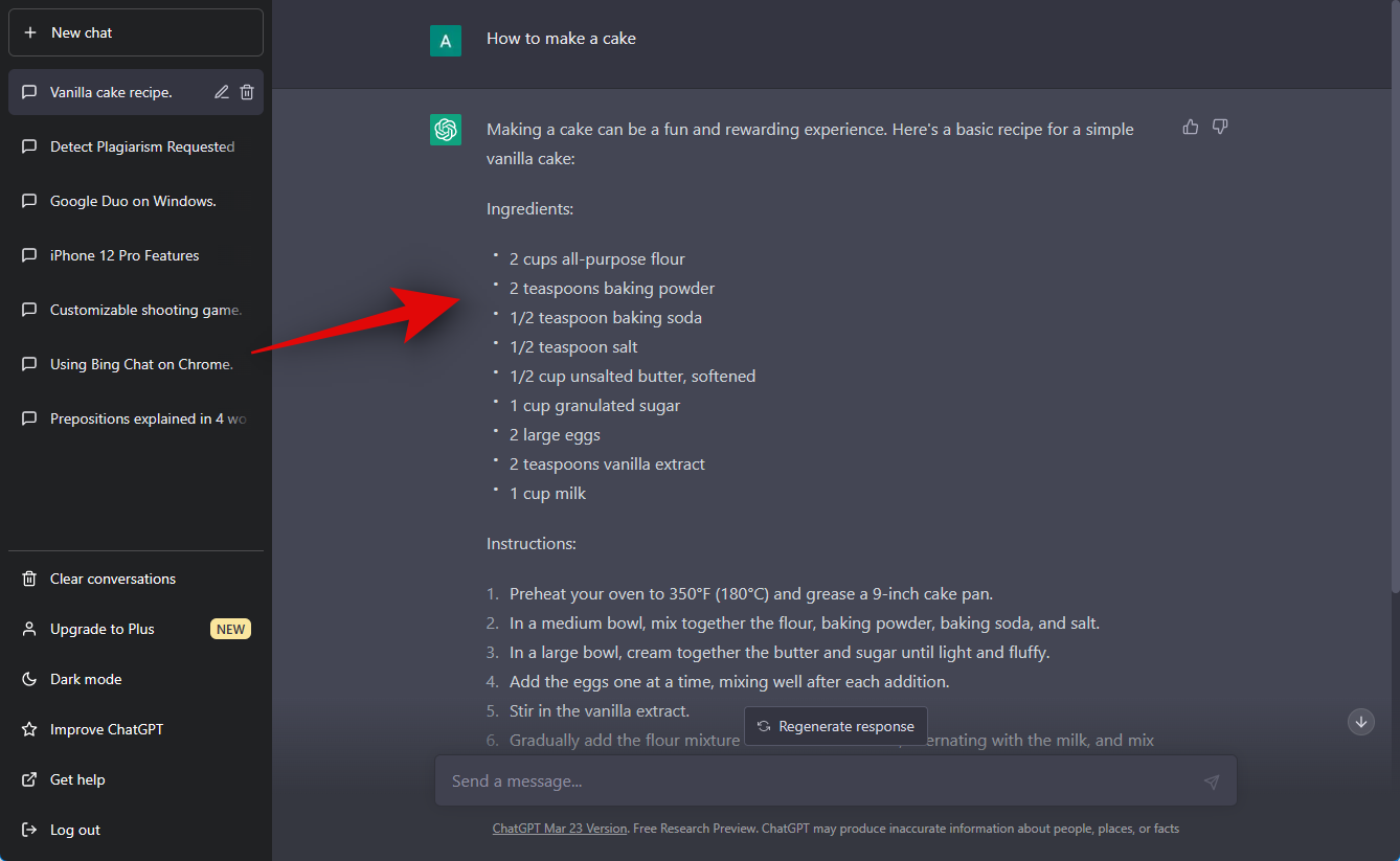 Let’s first test a ChatGPT output and see how it fares against popular AI detection tools. We will use “How to make a cake” as a prompt for this example.