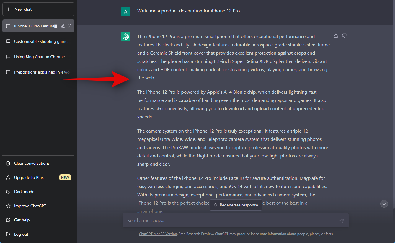 Another way to test for plagiarism is by testing for product descriptions. Product descriptions can be quite tough as the product specifications remain the same, which can make it harder for ChatGPT to generate original responses. Let’s try a product description for the iPhone 12 Pro.