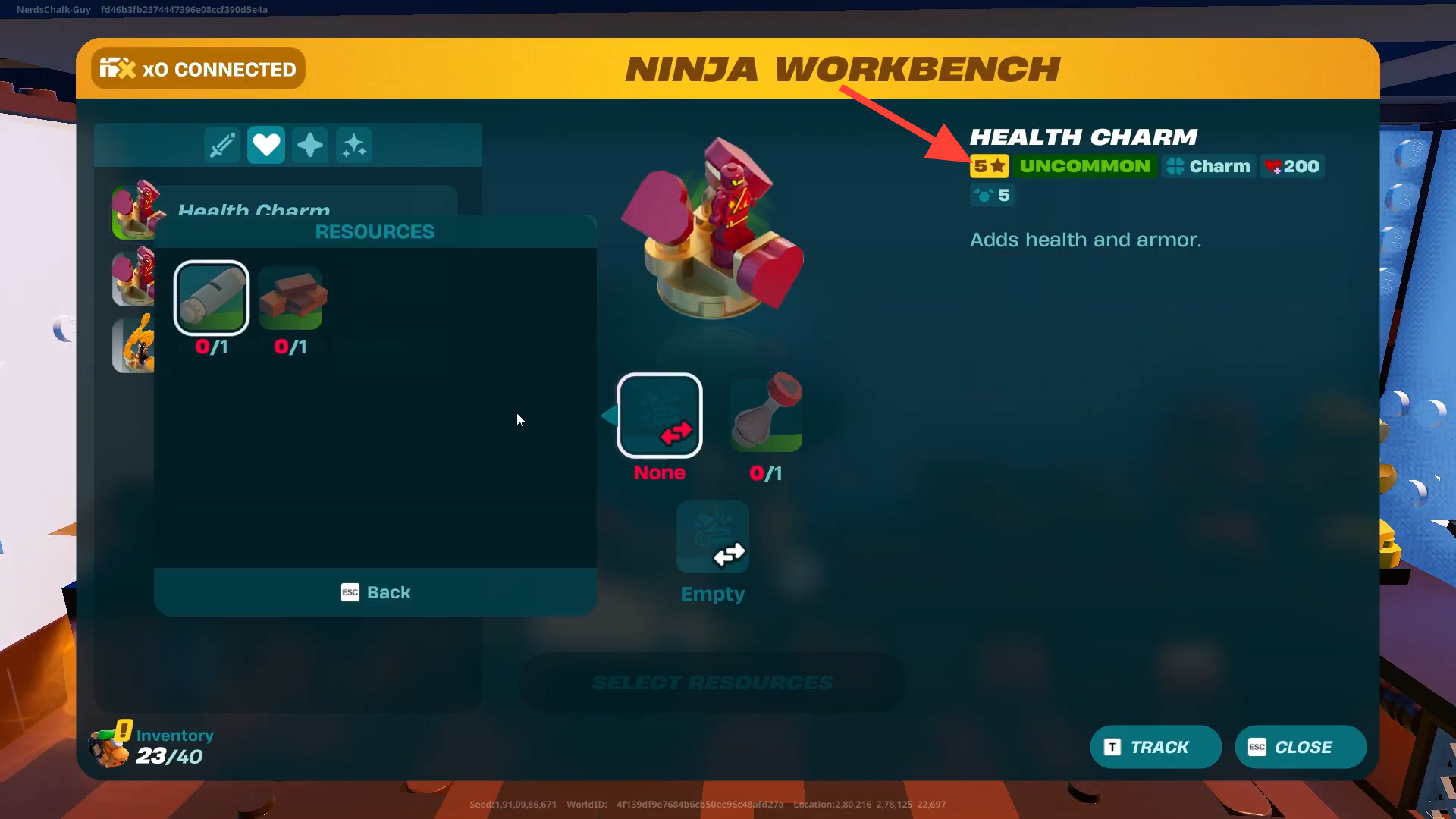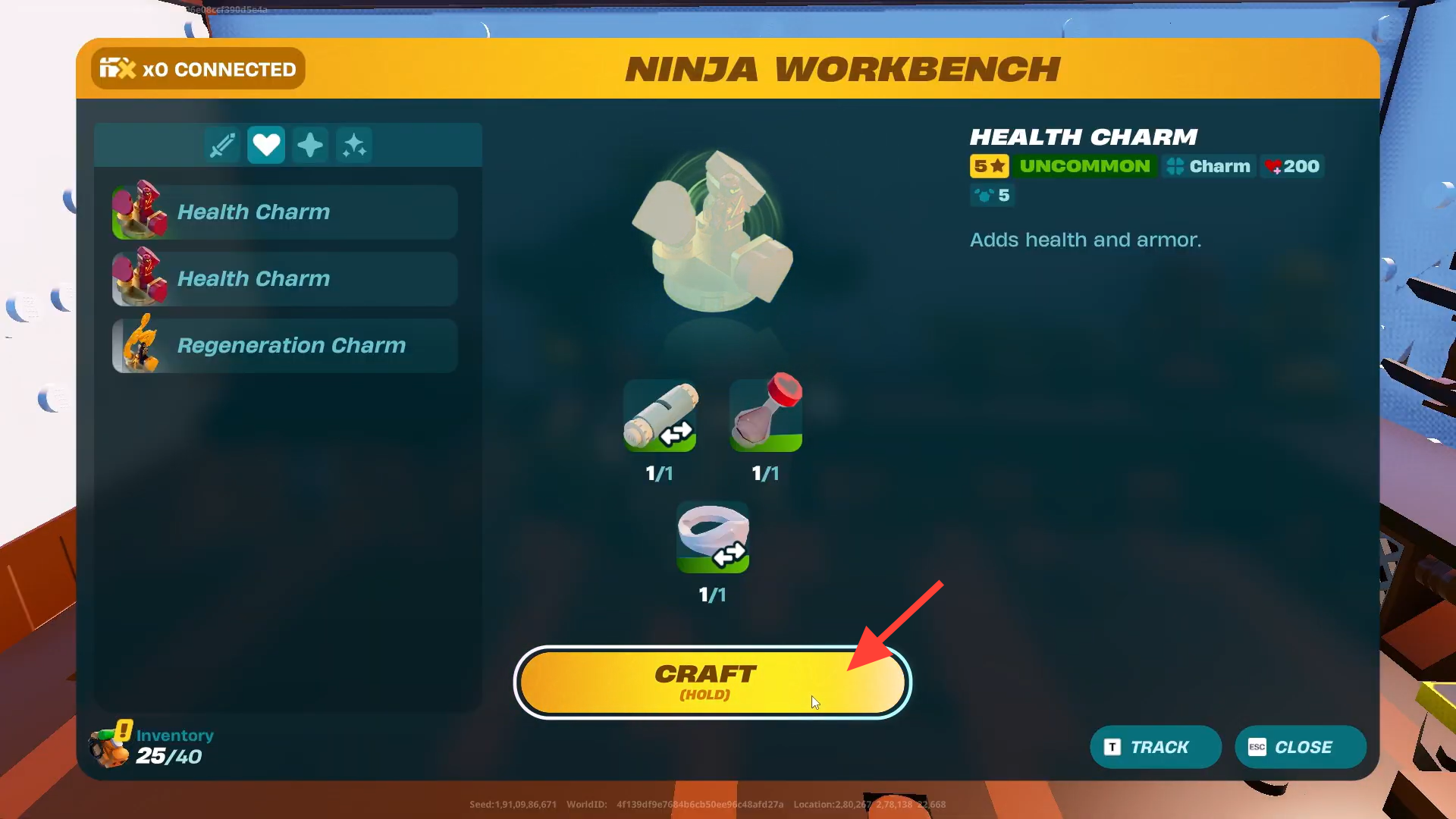 Craft any charm or totem here. We are going for the Health Charm with the 5-star rating.