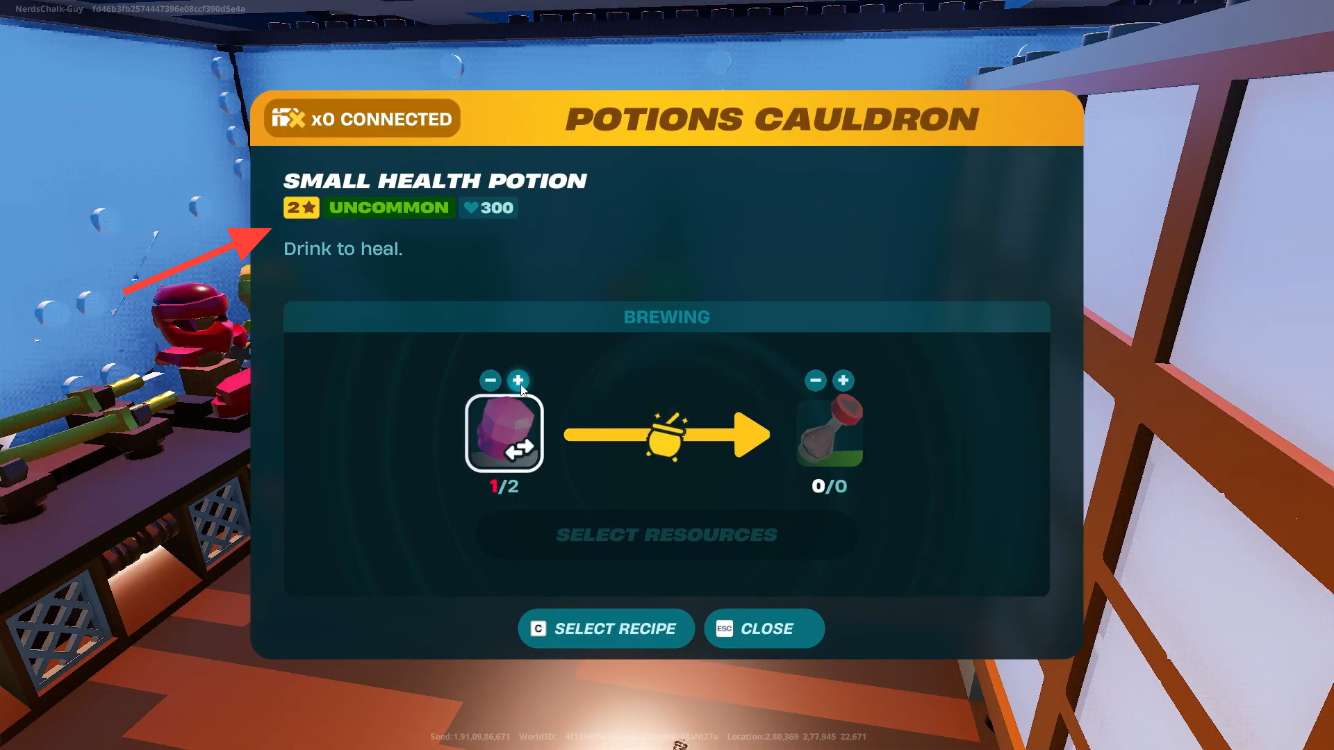 Next, you need to get the Small Health Potion. Use the Potions Cauldron to craft the Small Health Potion using any healthy food.