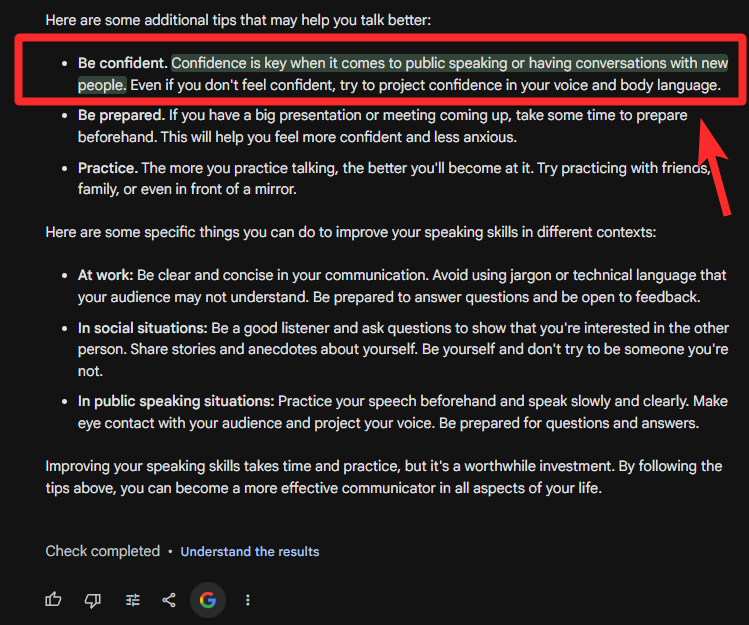 Let Google evaluate the response in Google Search results. Wait till you see the “Understand the results” text.