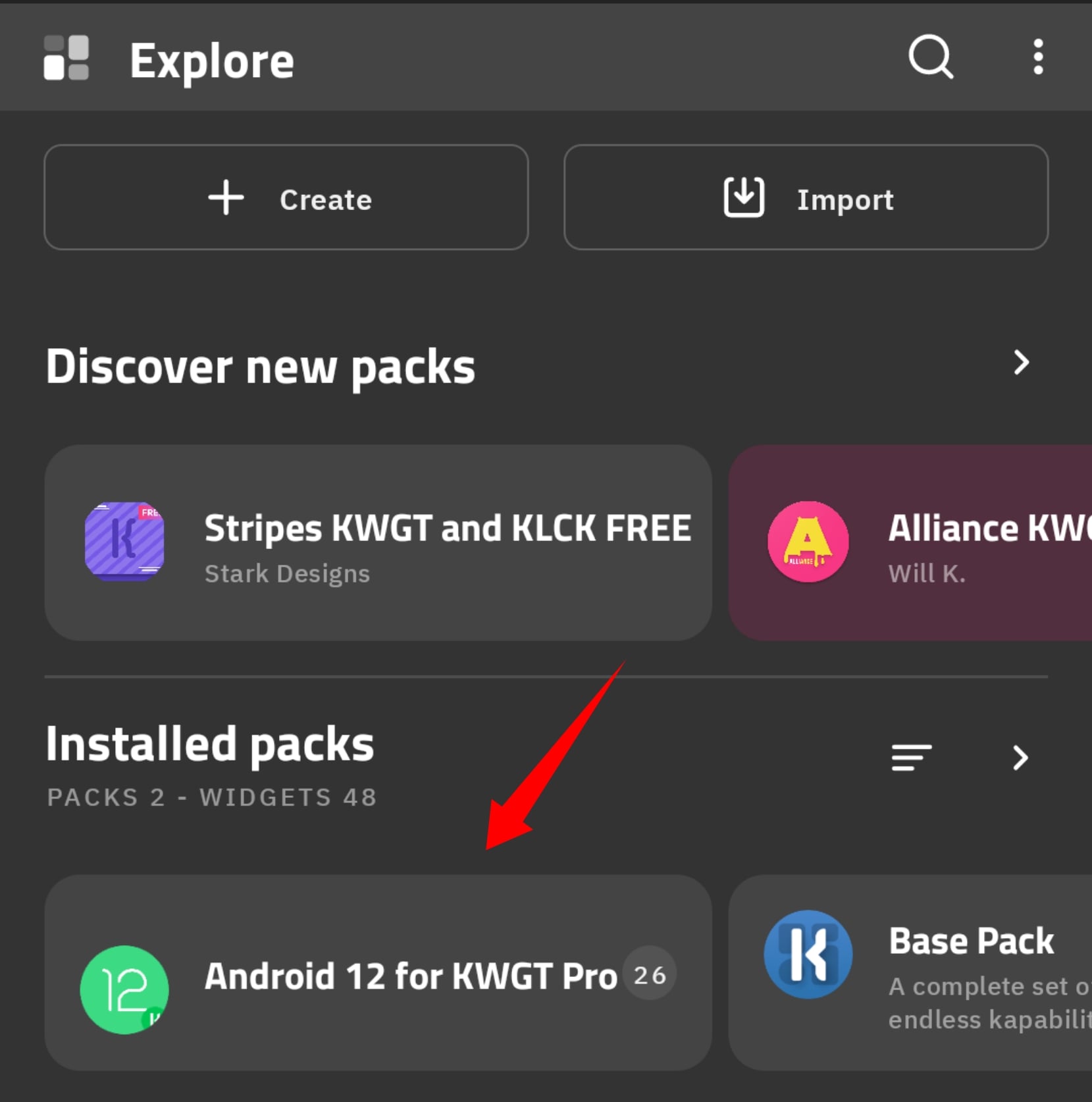The KWGT widgets app should now open on your device where you will now be able to select the desired widget you wish to assign to the current space. Tap and open the Android 12 widget pack downloaded above.