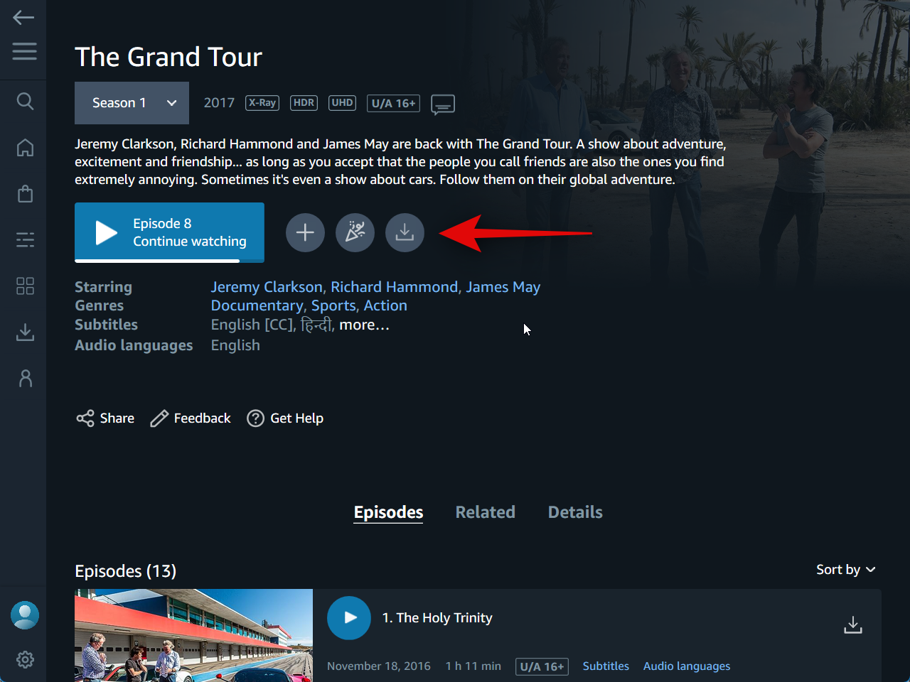 Amazon Prime does not let you download all its content like its mobile app. So, you must check to see if your favorite content is downloadable for offline viewing. Downloadable content will have a Download button next to the title once you click it.