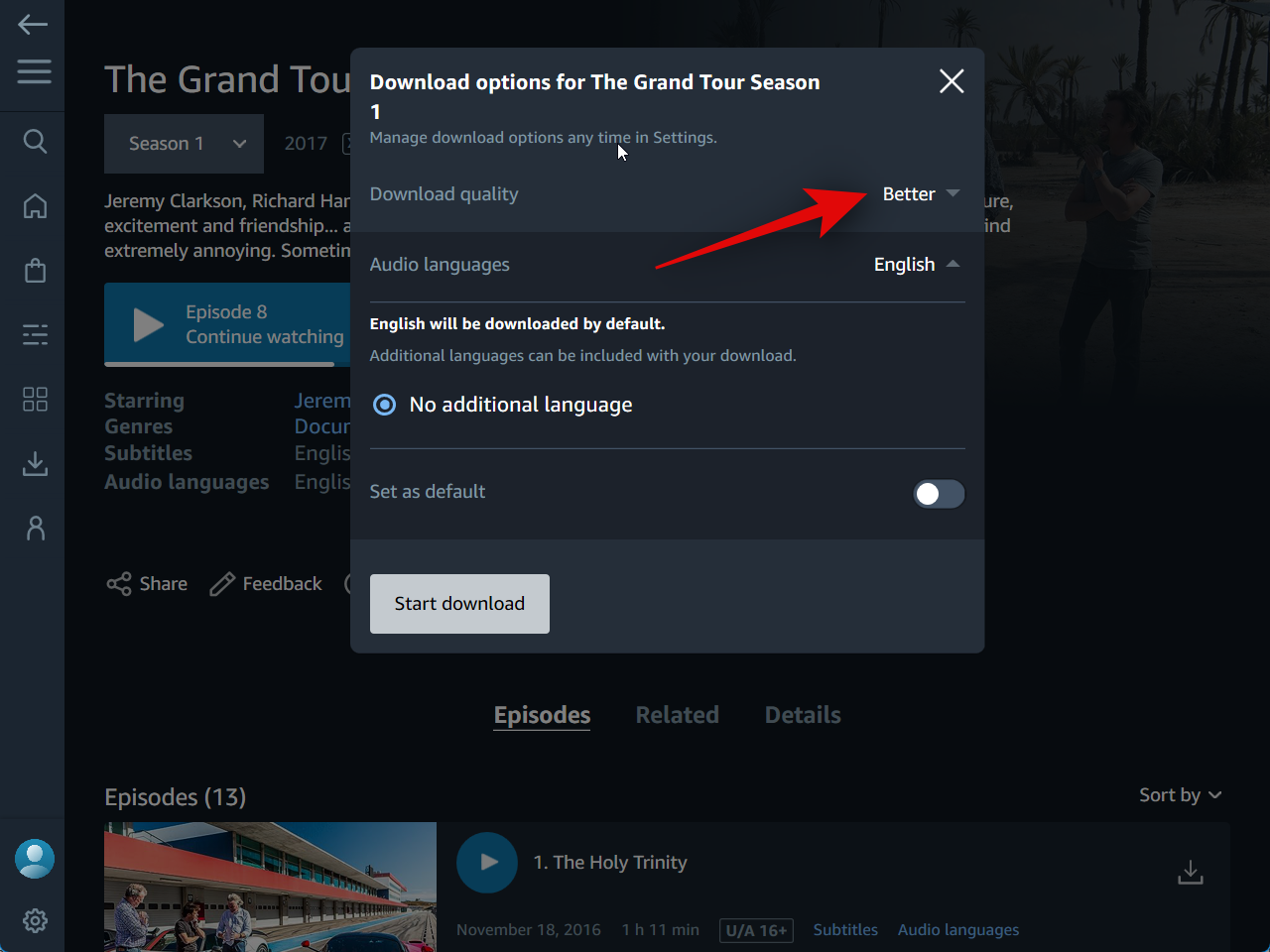 Click and select your preferred download quality under Download quality.