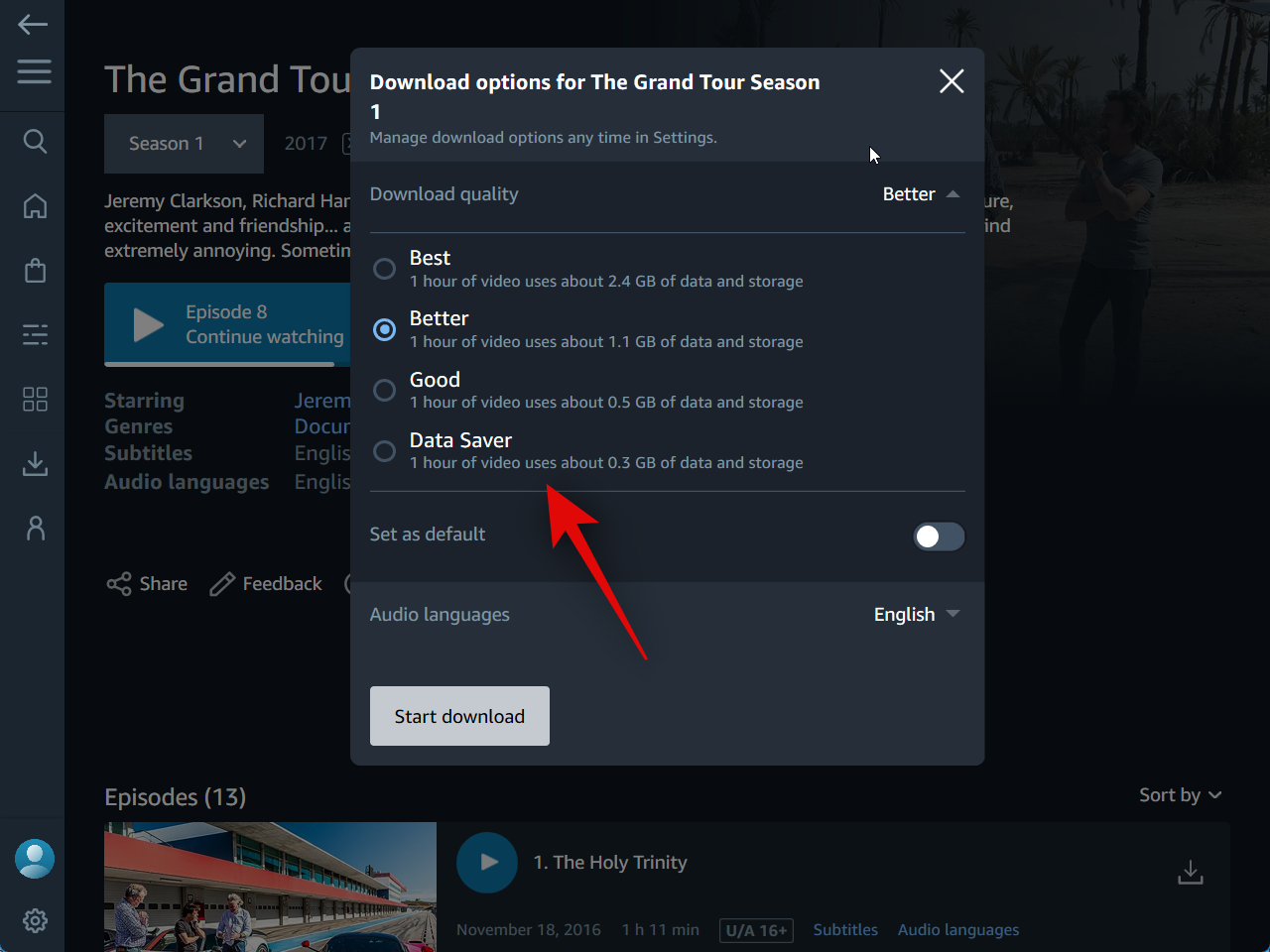 Now select the quality in which you wish to download the TV show or movie.