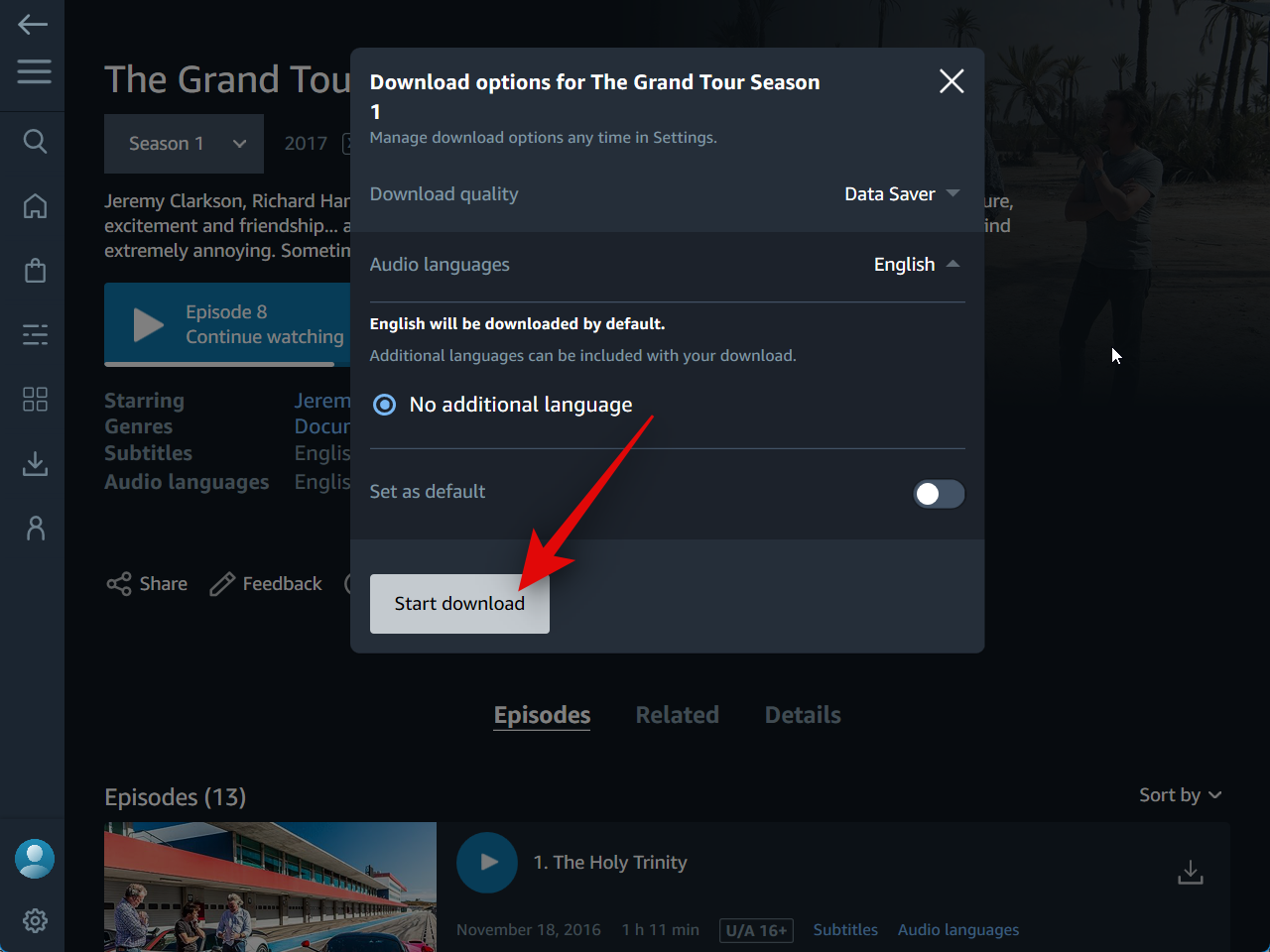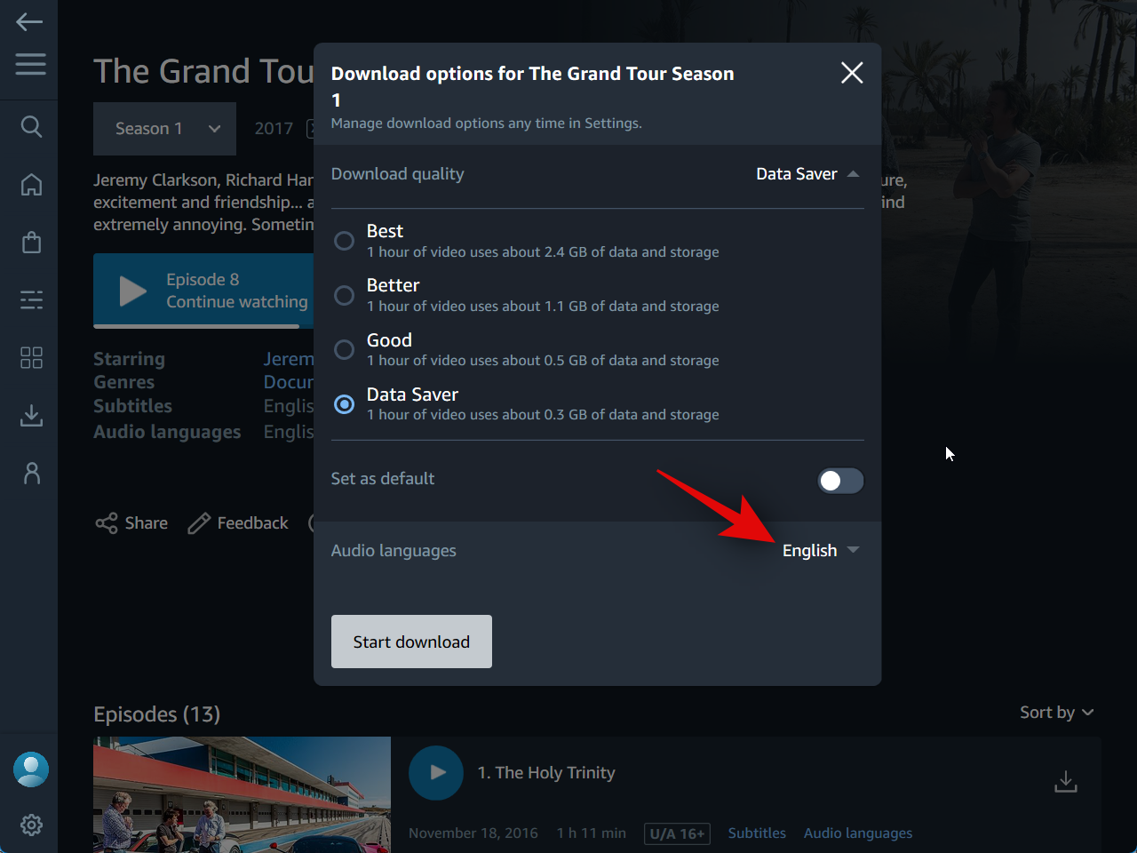 Select the language in which you wish to download the TV show or movie.