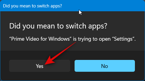 Your PC will now prompt you that Prime Video is trying to open the Settings app. Click Yes to confirm your choice.