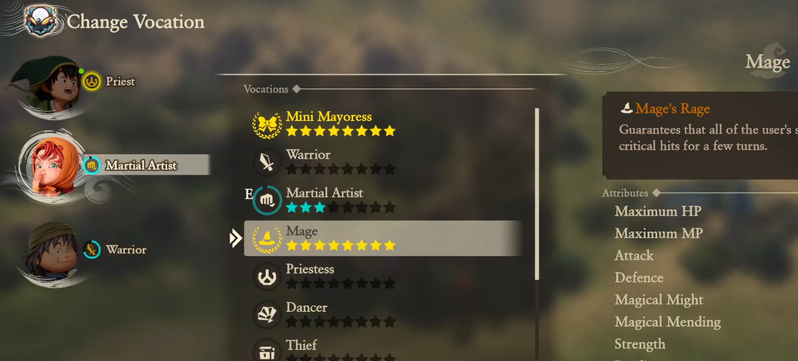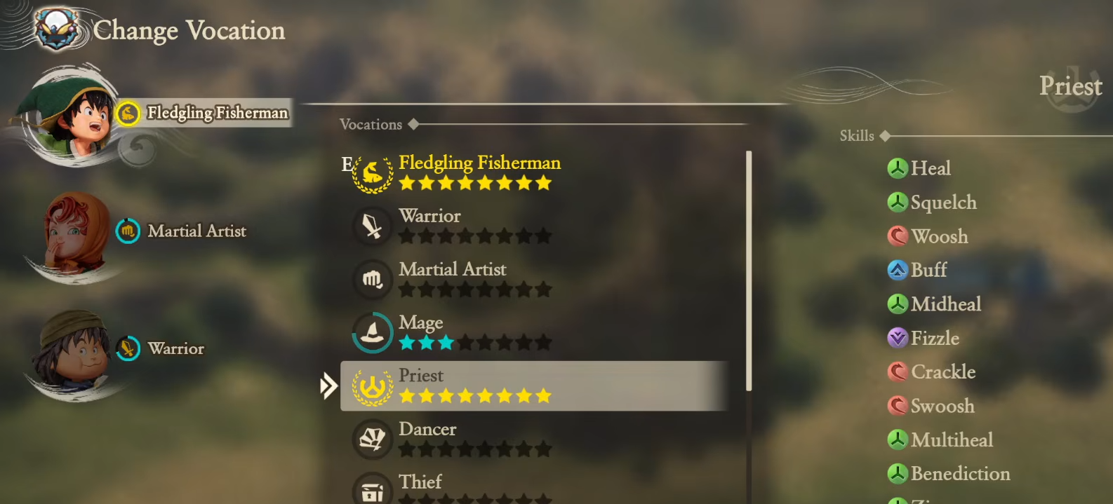 For the protagonist, the Priest is considered the most critical early-game vocation. The standout feature is Multiheal, unlocked at Rank 6, which restores the health of all party members in a single turn. This is vital for maintaining “turn economy” – ensuring you aren’t spending every action just trying to stay alive.