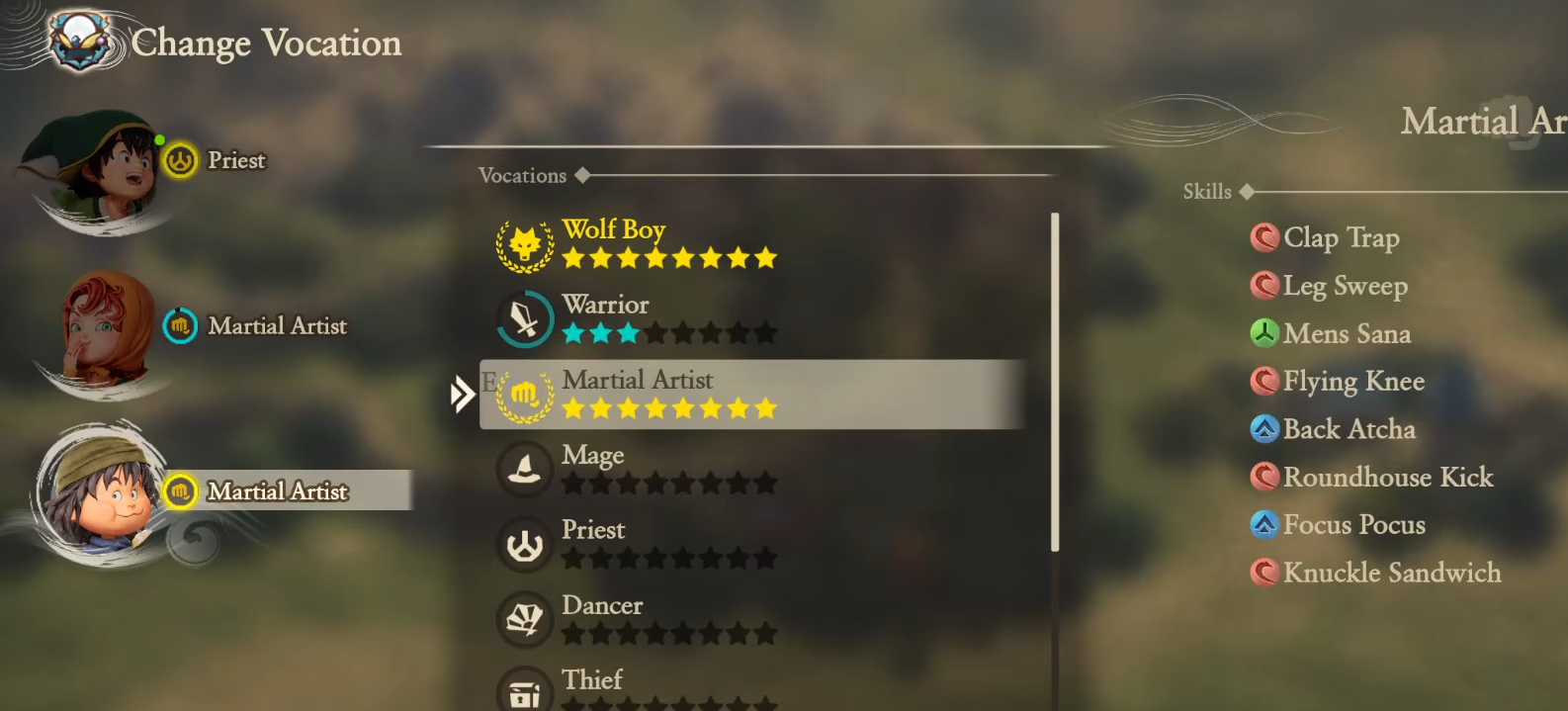 Ruff excels as a Martial Artist, a vocation that focuses on high-offense and self-sufficiency. Unlike the Warrior, the Martial Artist can buff itself using Clap Trap, an attack that simultaneously increases your own attack power.