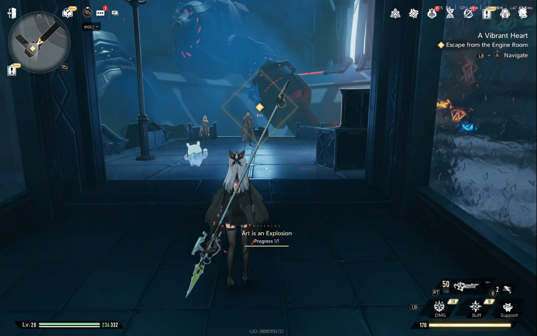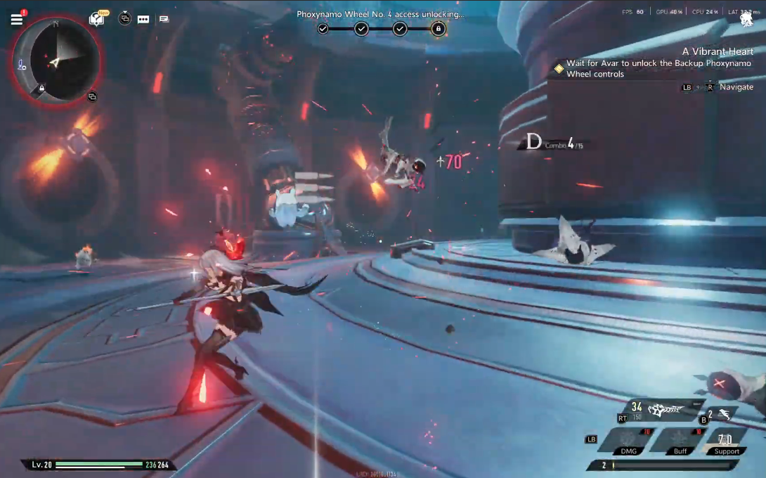 A Vibrant Heart” continues your main storyline inside the high-tech fortress. The mission challenges you to navigate complex areas, battle Filthoid variants, and assist Avar in reactivating multiple Phoxynamo wheels to restore power to the heart of the engine room.
