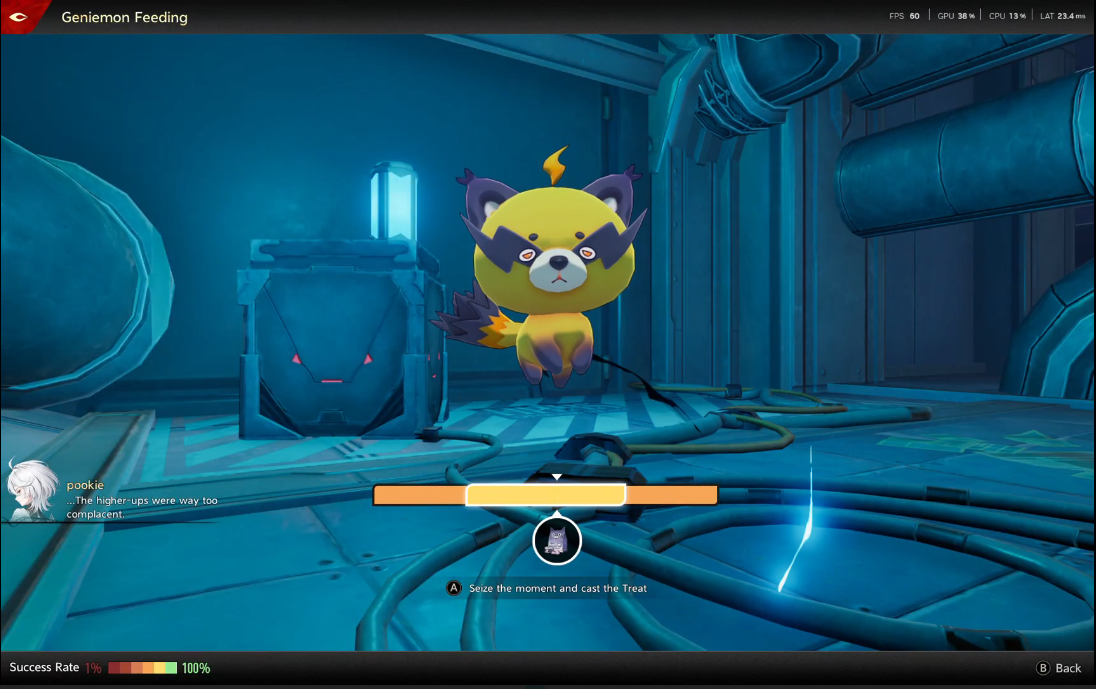 Follow the glowing floor markings deeper into the area. Along the way, activate any Geniemon you encounter—they assist with scanning and unlocking deeper access points.