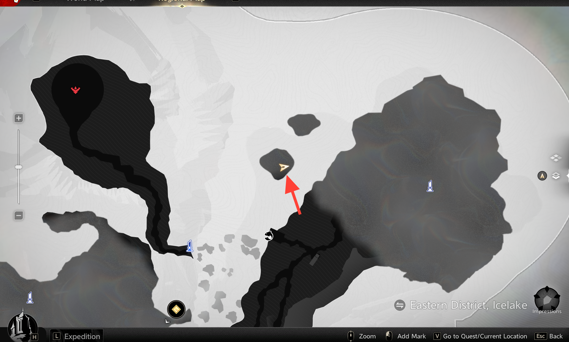 Exit Sanctuary. Use the map to teleport either to “Windwake Pier Avian Tower” or, if unavailable, “Icelake Outskirts Avian Tower.” Follow the quest marker to Lamenting Lake.